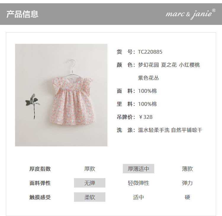 【马克珍妮 芦芙系列】夏装新款 女童清新碎花小衫220885