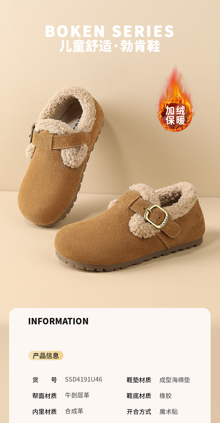 【童鞋】星期六时尚百搭男女童加绒勃肯鞋SSD4191U46