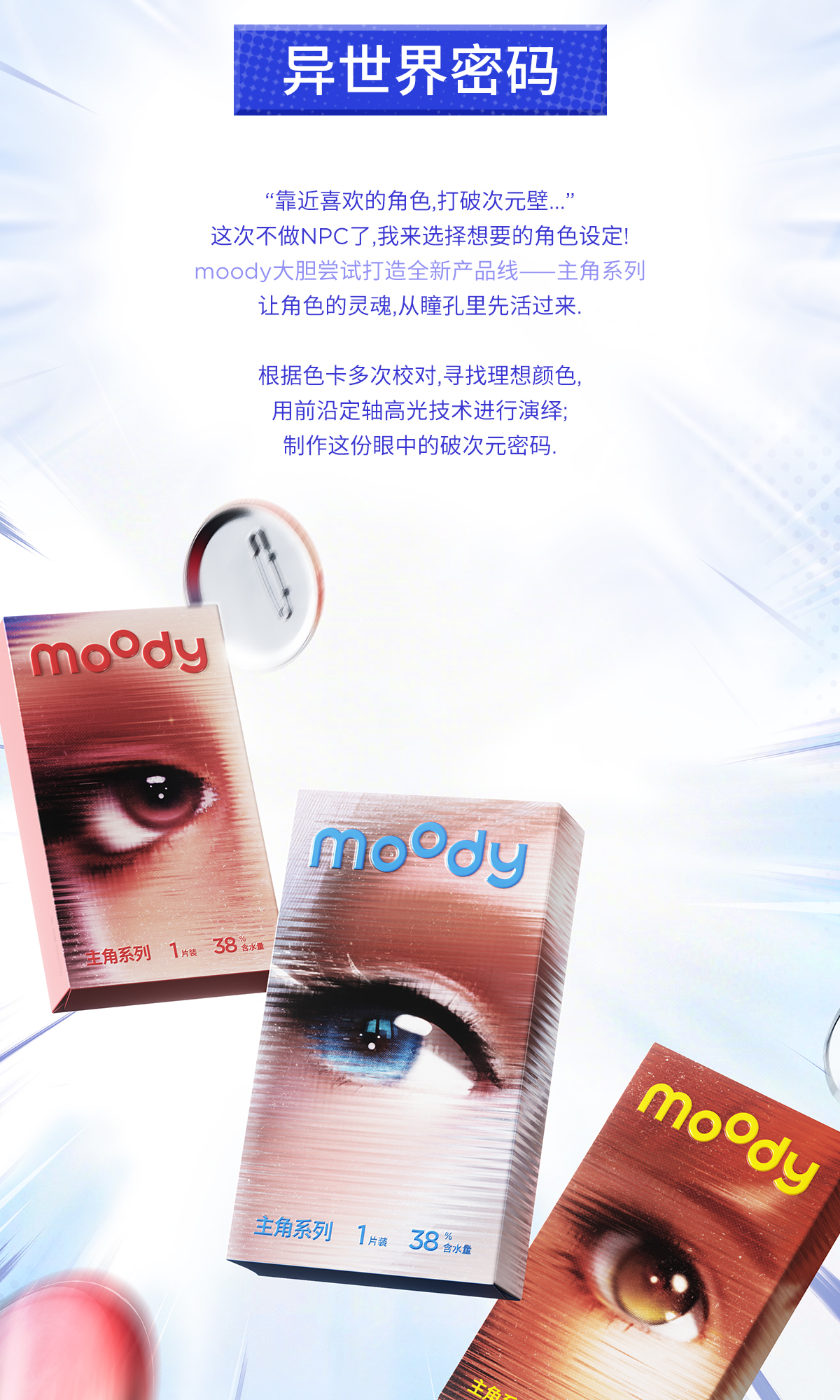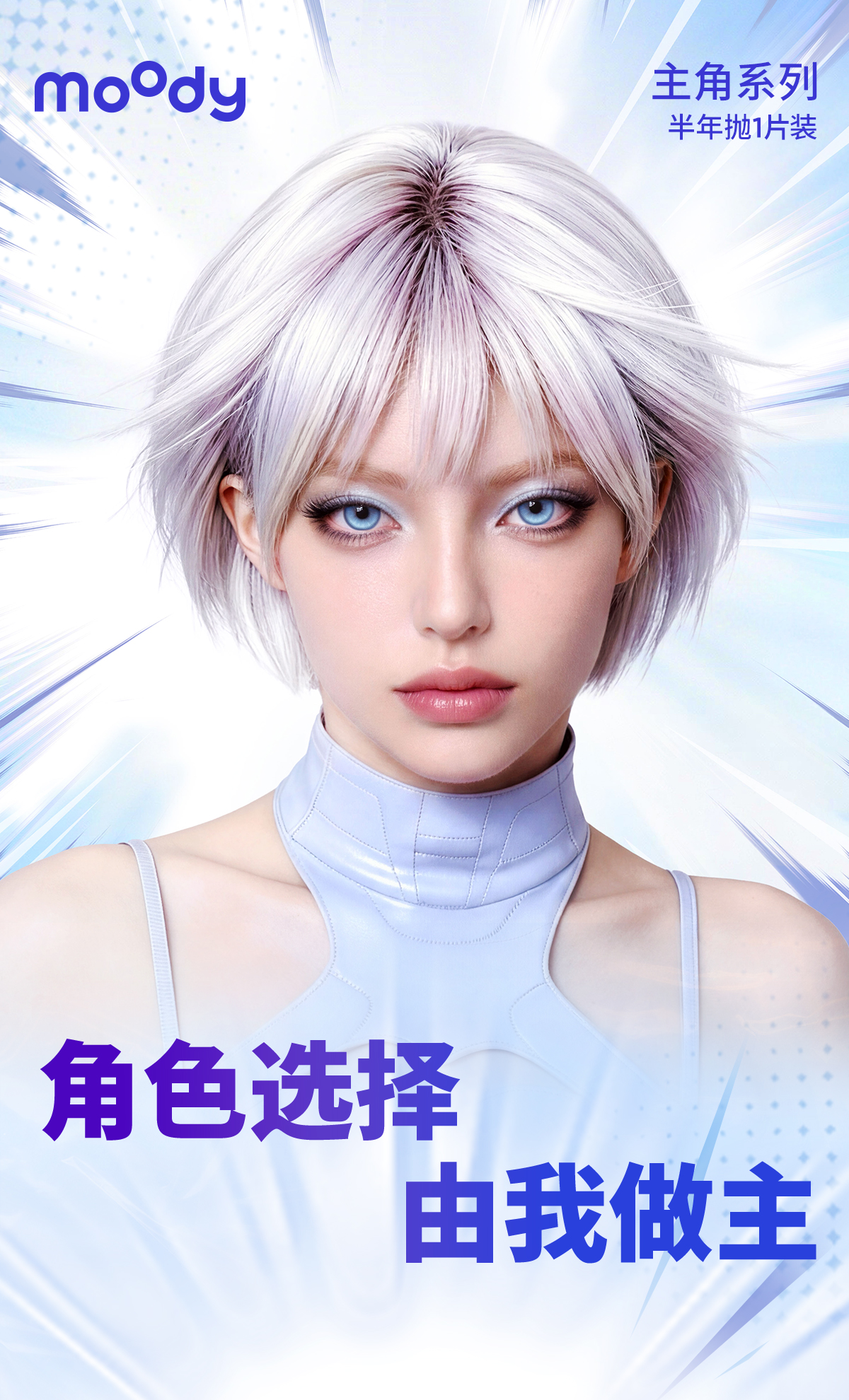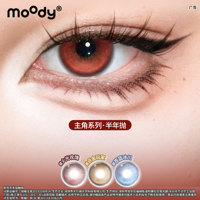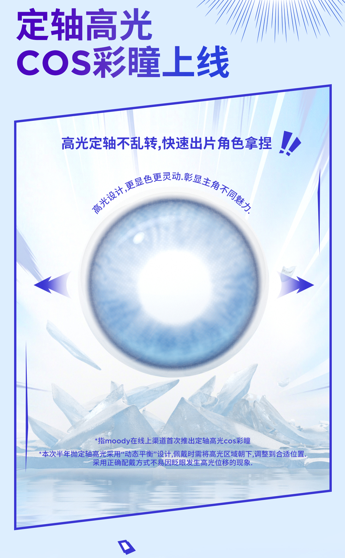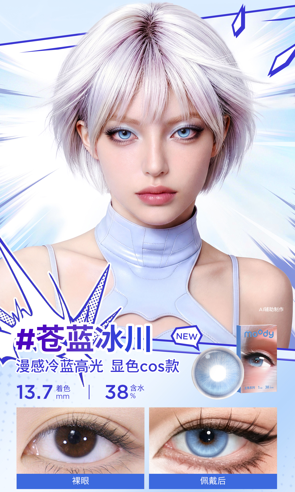 【小moo宠粉季】moody主角系列半年抛苍蓝冰川彩色隐形眼镜定轴高光显色COS款 1片装