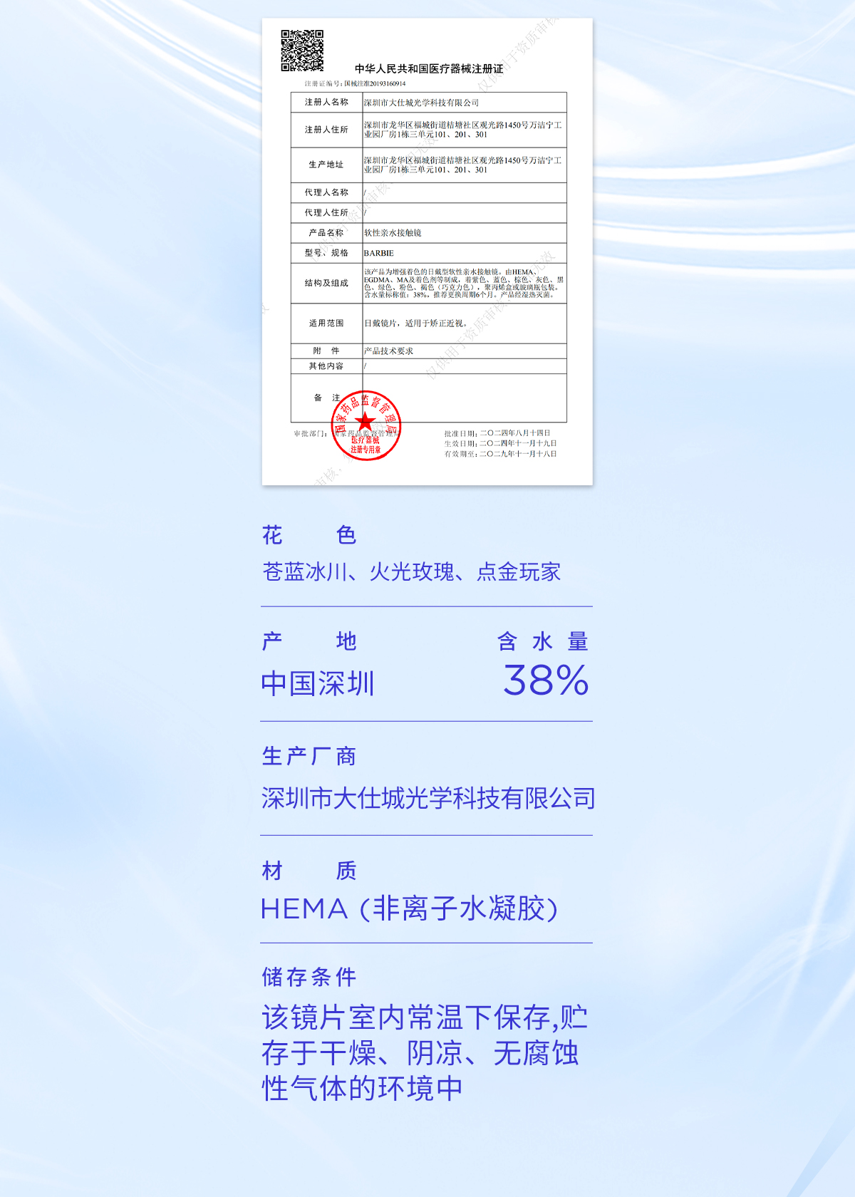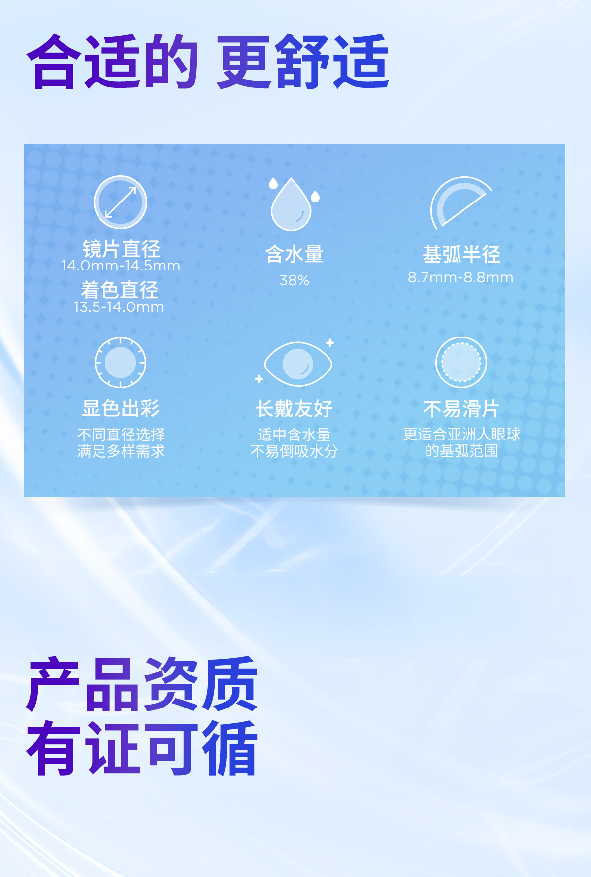 moody隐形眼镜水感白片 日抛6片 水凝胶