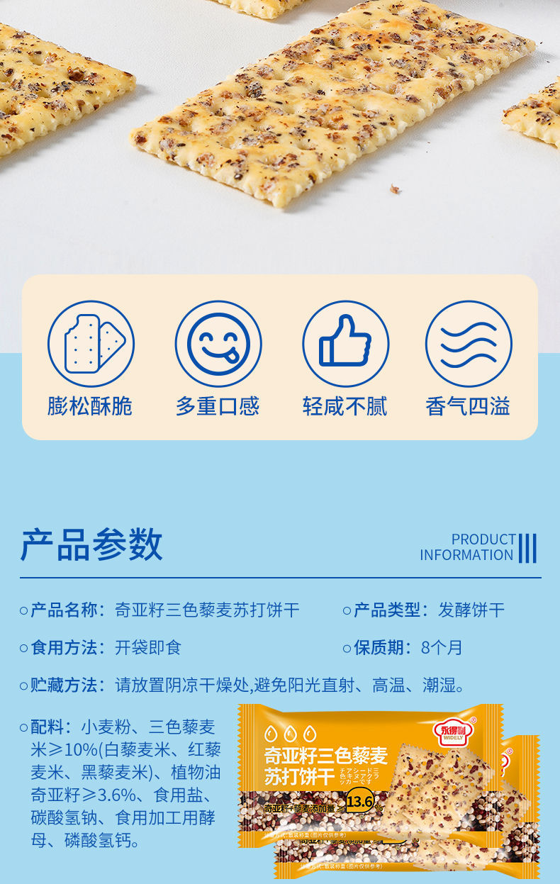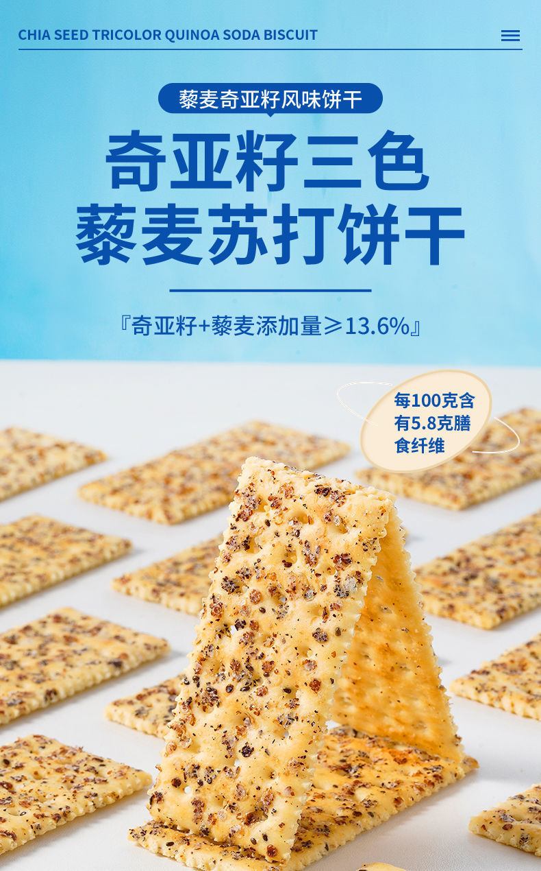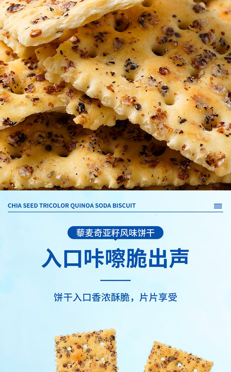 【超值20包❗️奇亚籽藜麦苏打饼干】满满谷物颗粒,嘎嘣酥脆不油腻,甄选品质原料制作,不单独添加蔗糖粗粮,好吃健康肠胃无负担,早餐代餐饼干下午茶饱腹茶点L