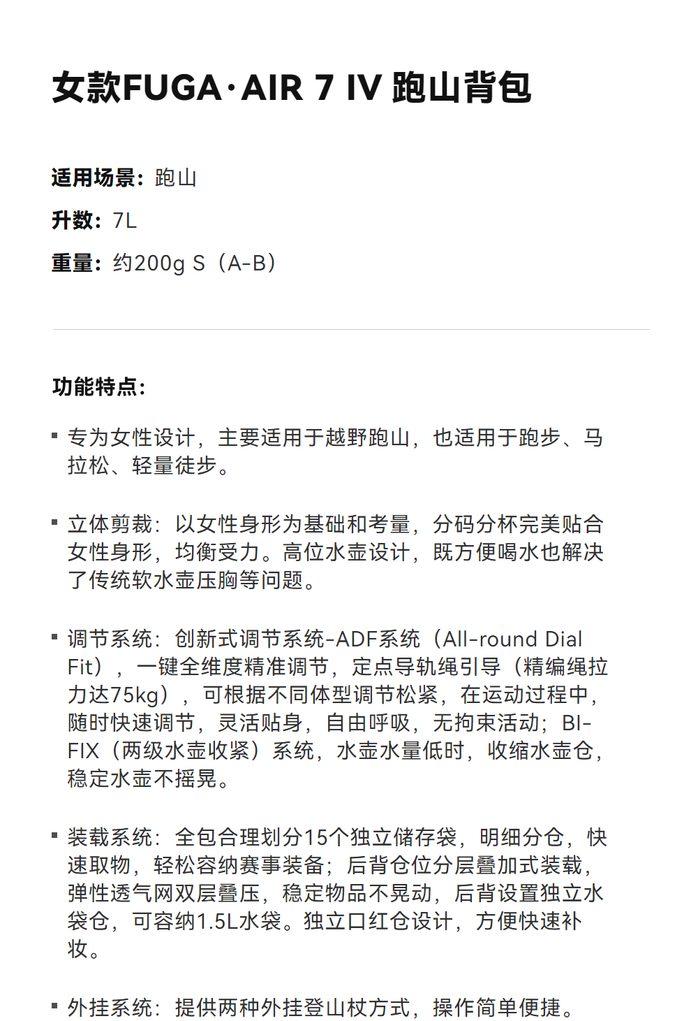 KAILAS凯乐石 女款FUGA AIR 7 Ⅳ 跑山背包 KA2564006