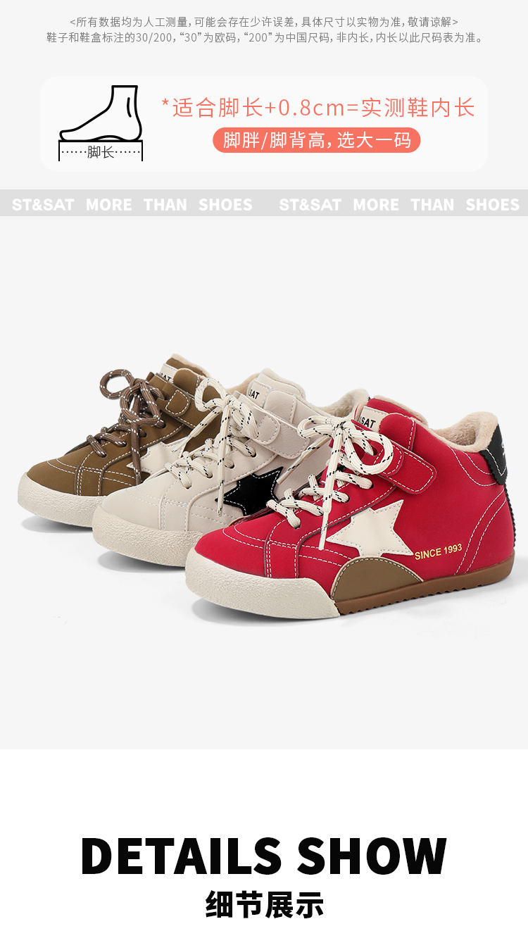【童鞋】星期六加绒俏皮星星男女童高帮运动鞋SSD4192L4Z
