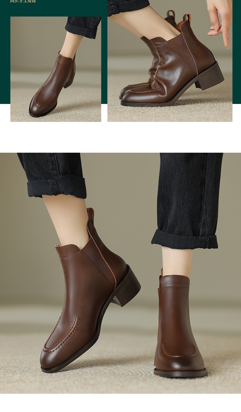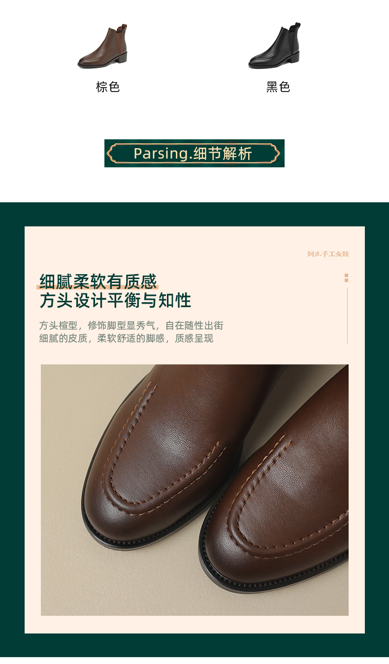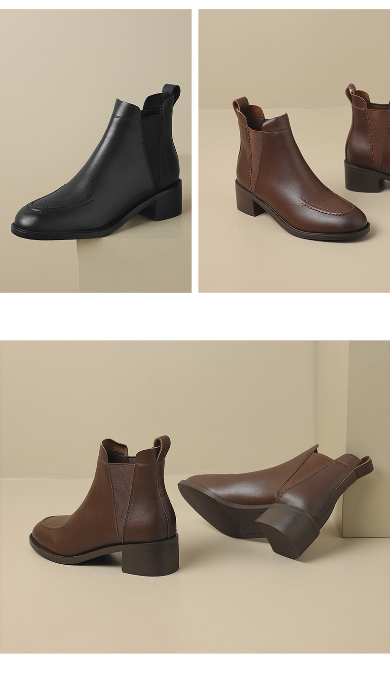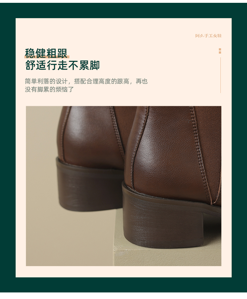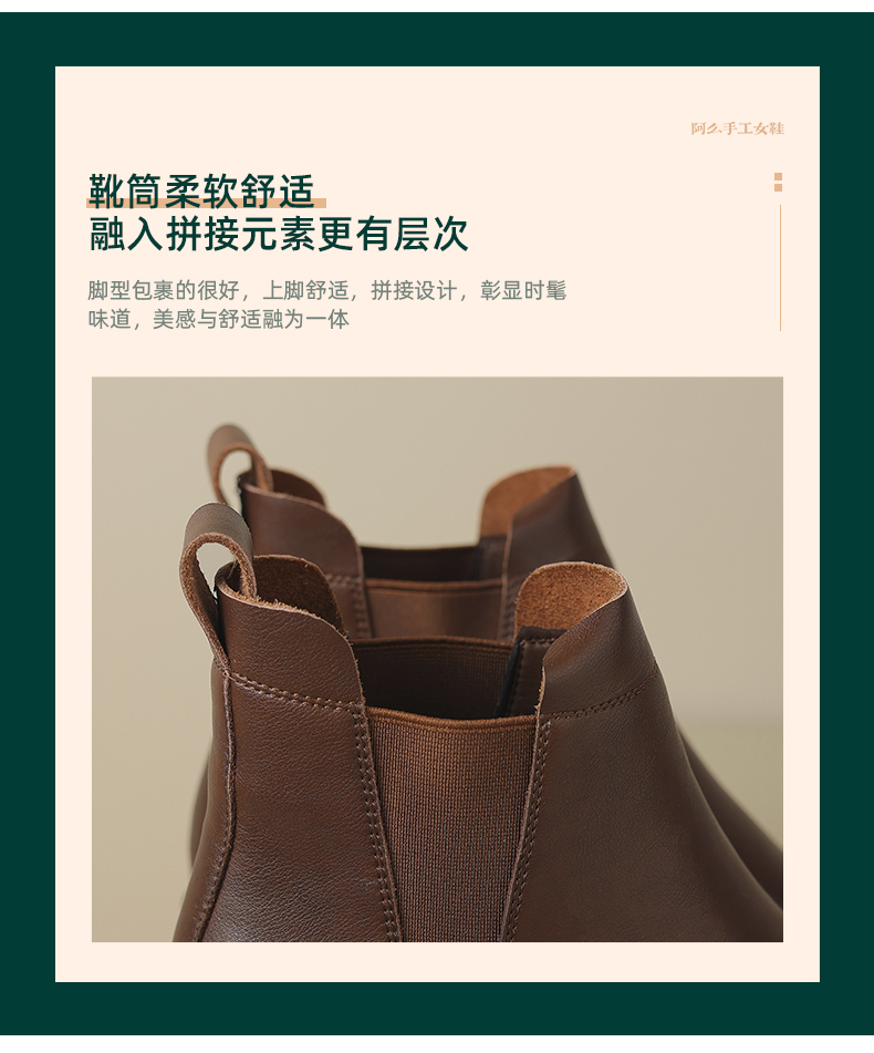 阿么手工女鞋复古棕色粗跟真皮切尔西靴4.5CM秋冬百搭渐变短靴女
