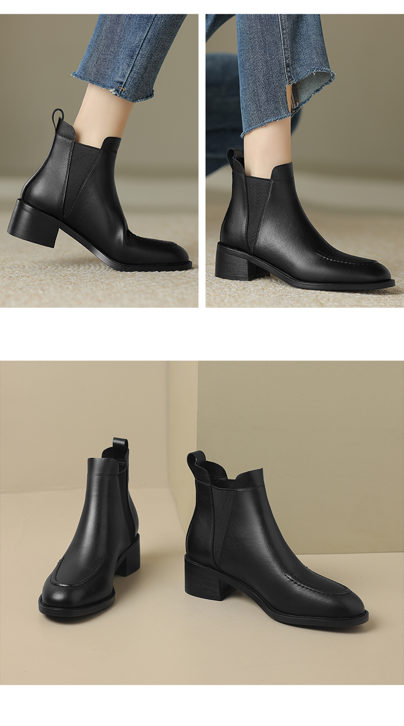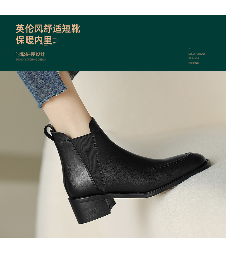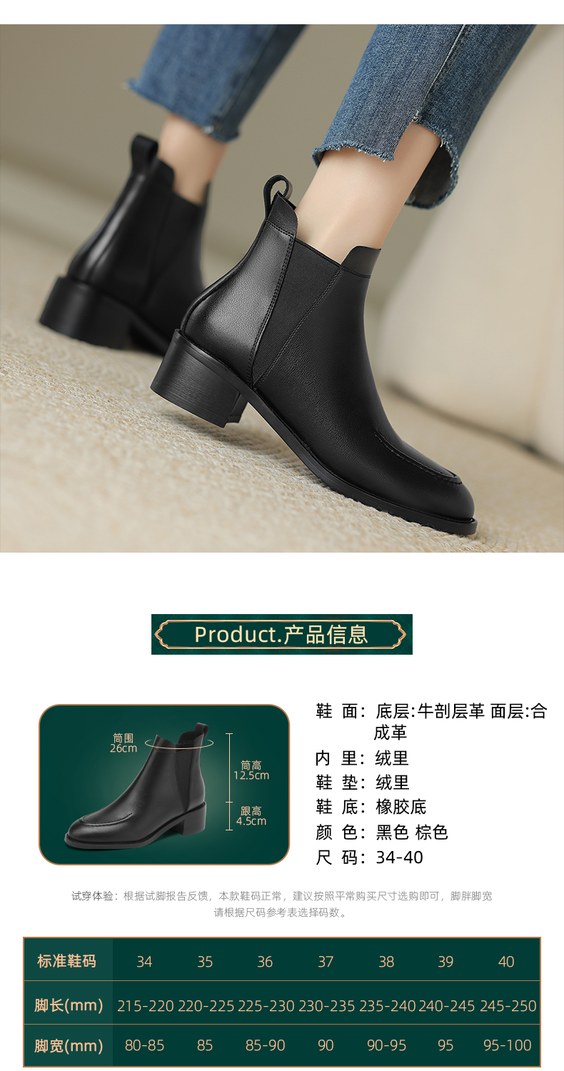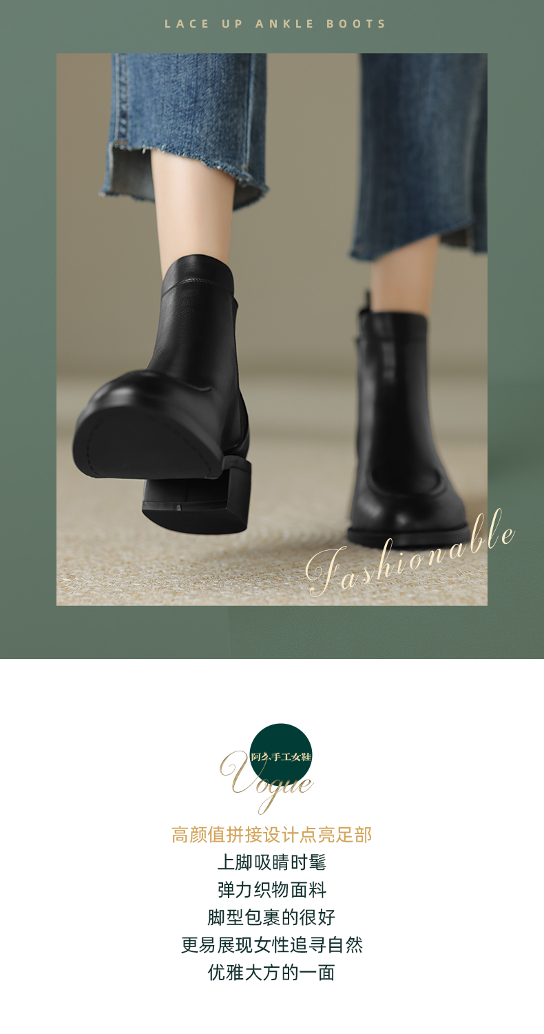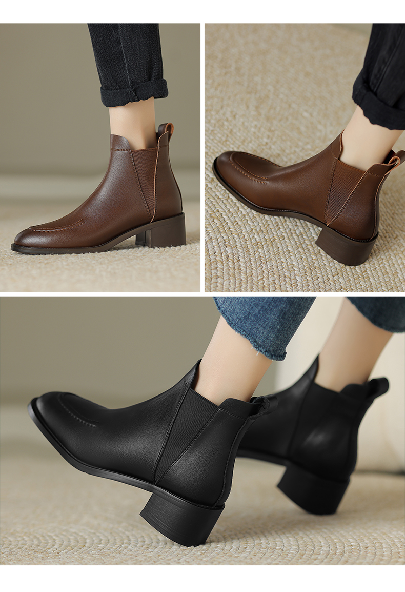 阿么手工女鞋复古棕色粗跟真皮切尔西靴4.5CM秋冬百搭渐变短靴女