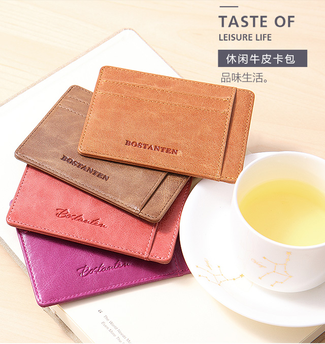 【会员价:44.27】波斯丹顿(BOSTANTEN)卡包名片夹 头层牛皮轻薄复古驾驶证皮套银行卡套迷你钱夹小钱包男女 B7162021卡其色