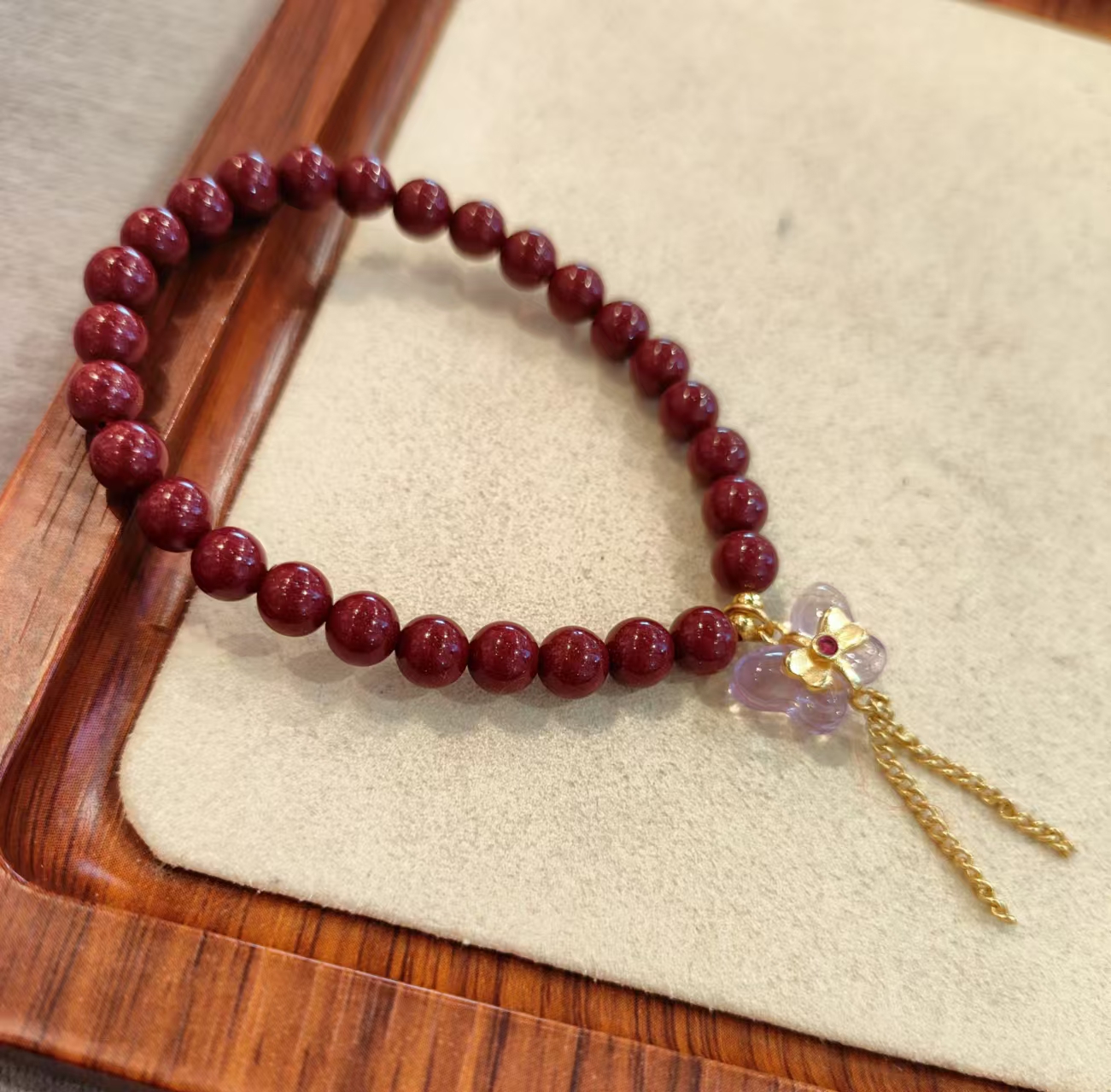 紫金纱手串,配紫水晶,珠子尺寸:6mm 重量:13g