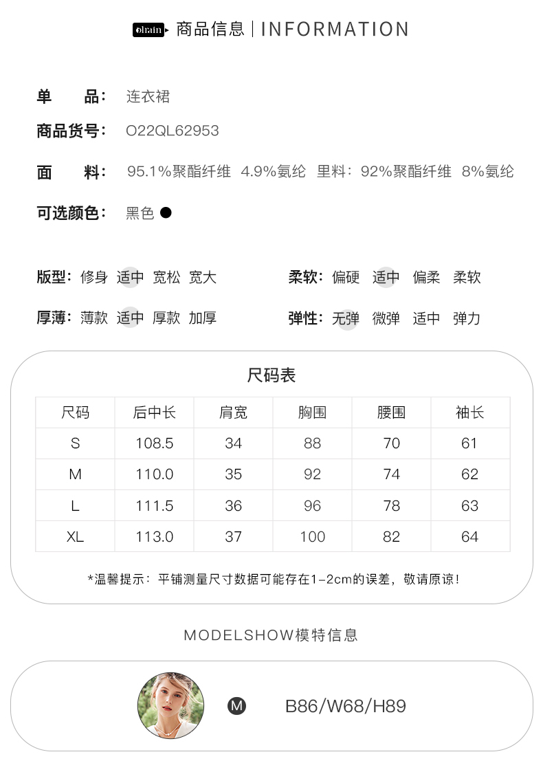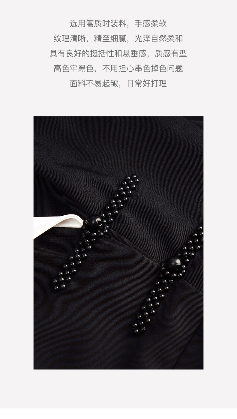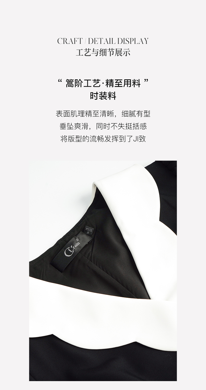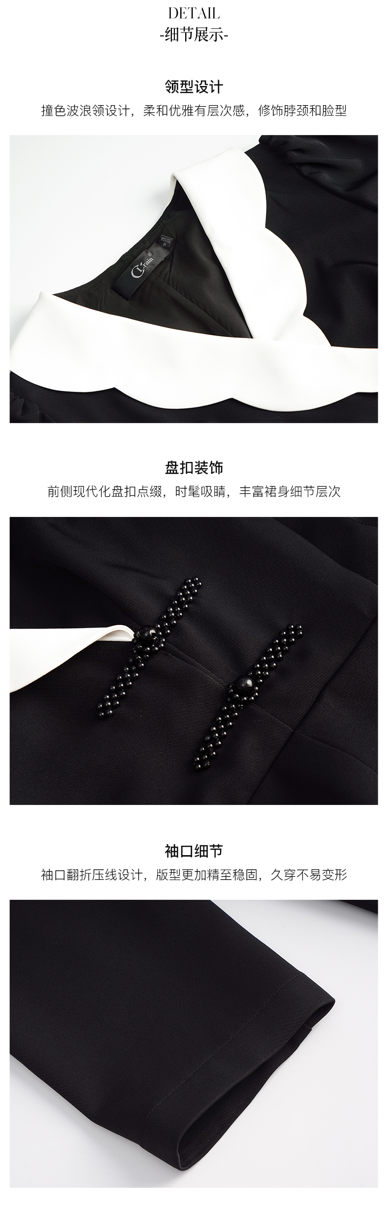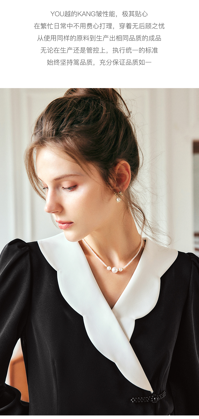 OLrain法式黑色连衣裙女早秋2022年新款显瘦设计感波浪领撞色裙子