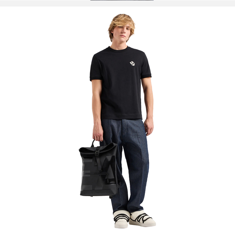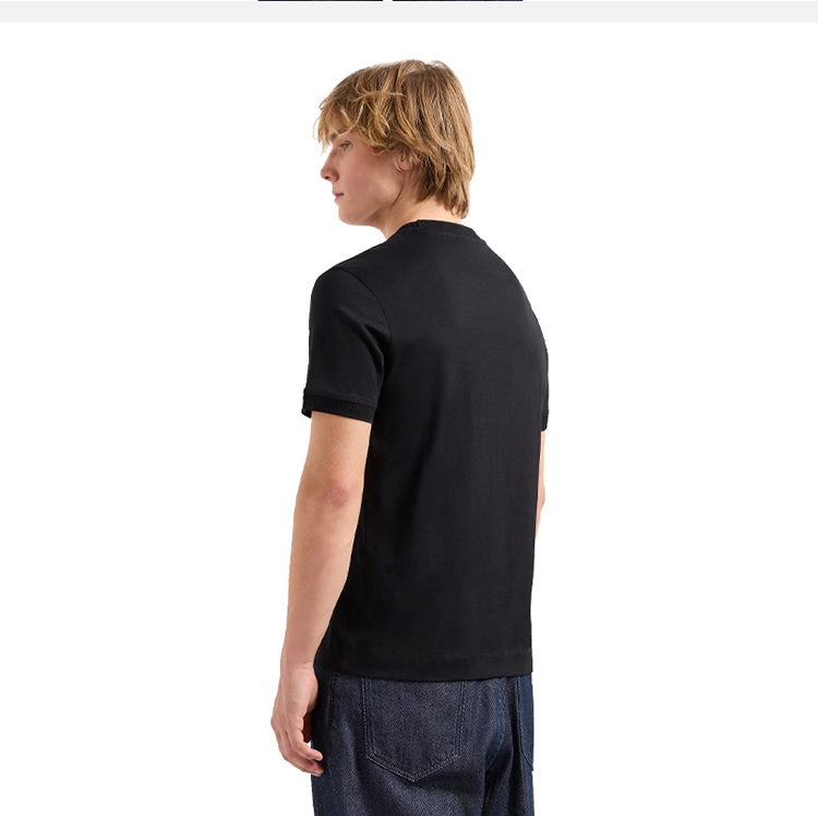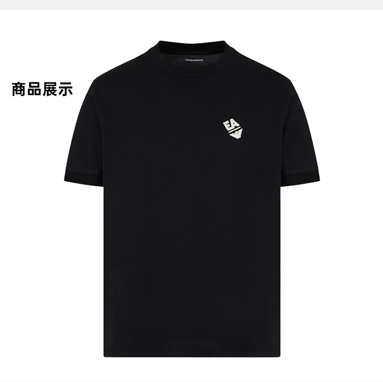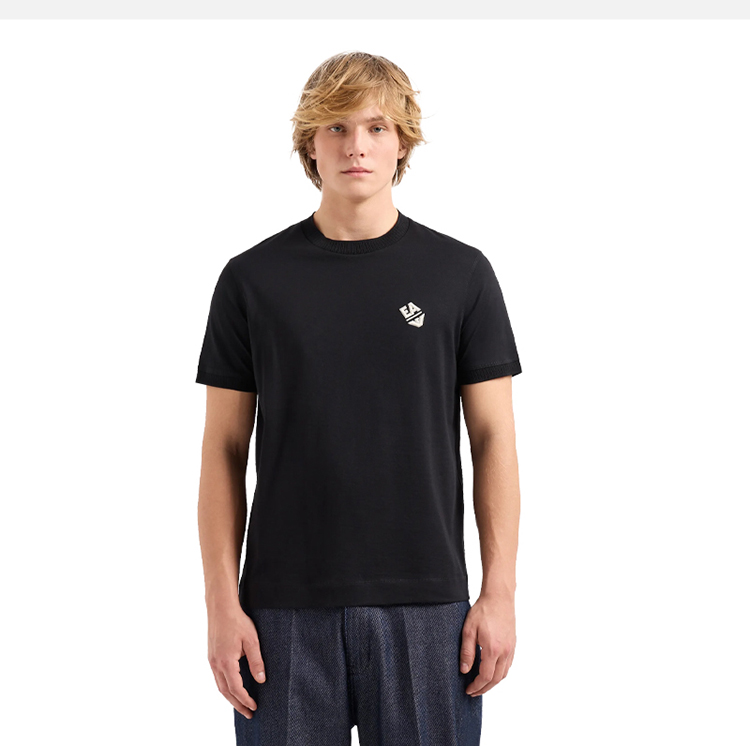 EMPORIO ARMANI 阿玛尼 男士徽标刺绣和罗纹饰边轻质平纹针织圆领短袖T恤 黑色 3D1TN3 1JOCZ 0032