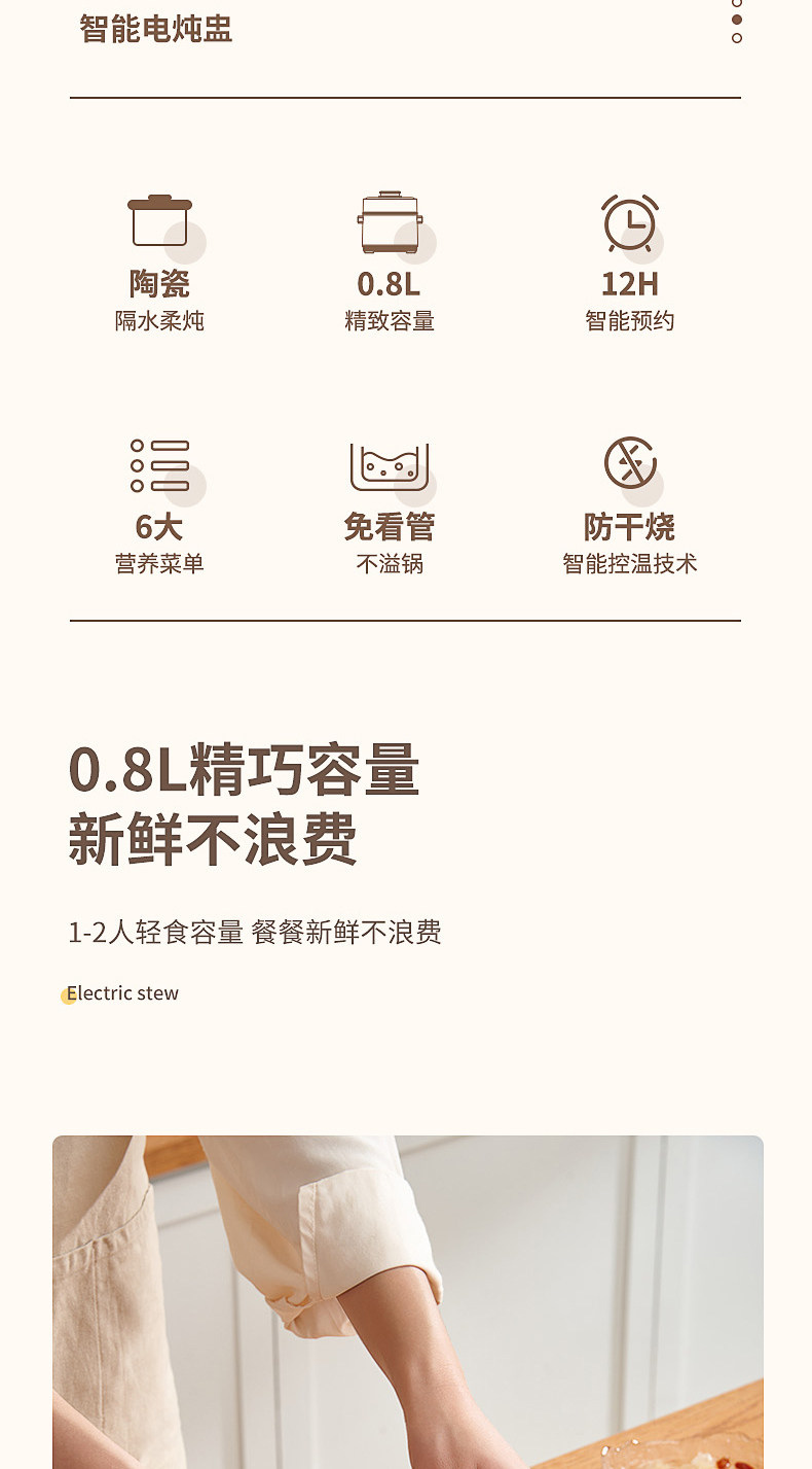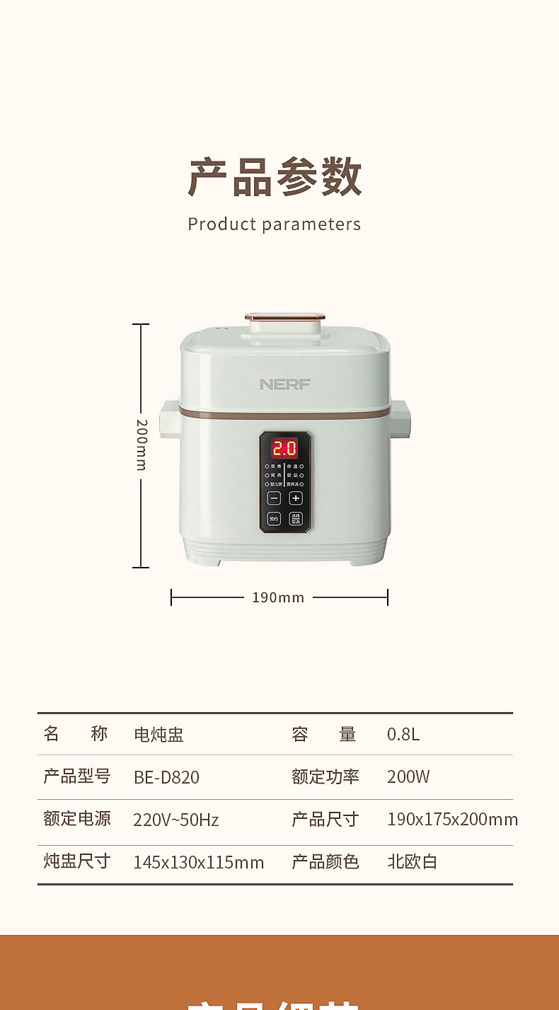美国nerf拉尔弗电炖盅小型隔水炖汤煲汤电炖锅BE-D820