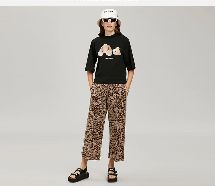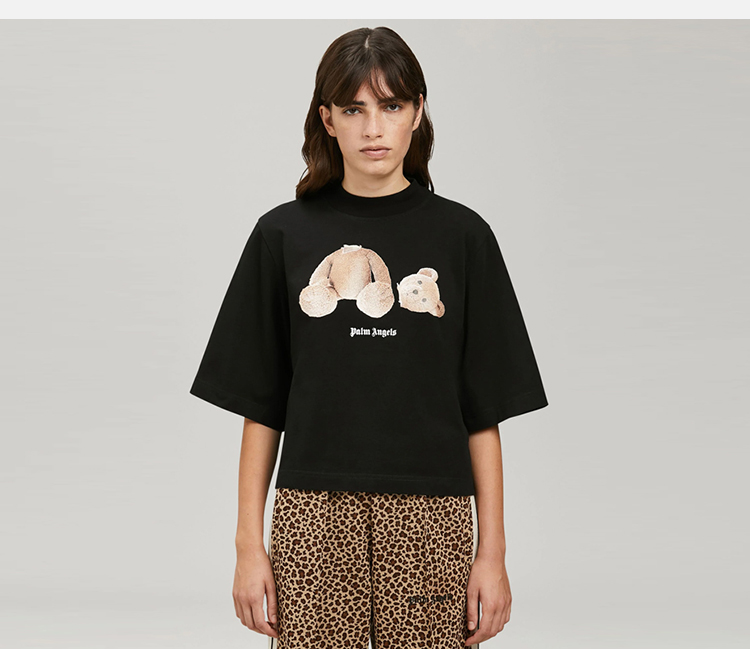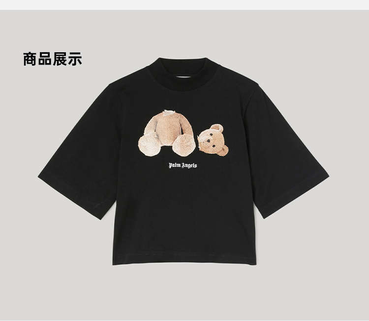 PALM ANGELS 棕榈天使 女士棉质断头熊徽标印花短款圆领短袖T恤 黑色 PWAA020C99JER001 1060