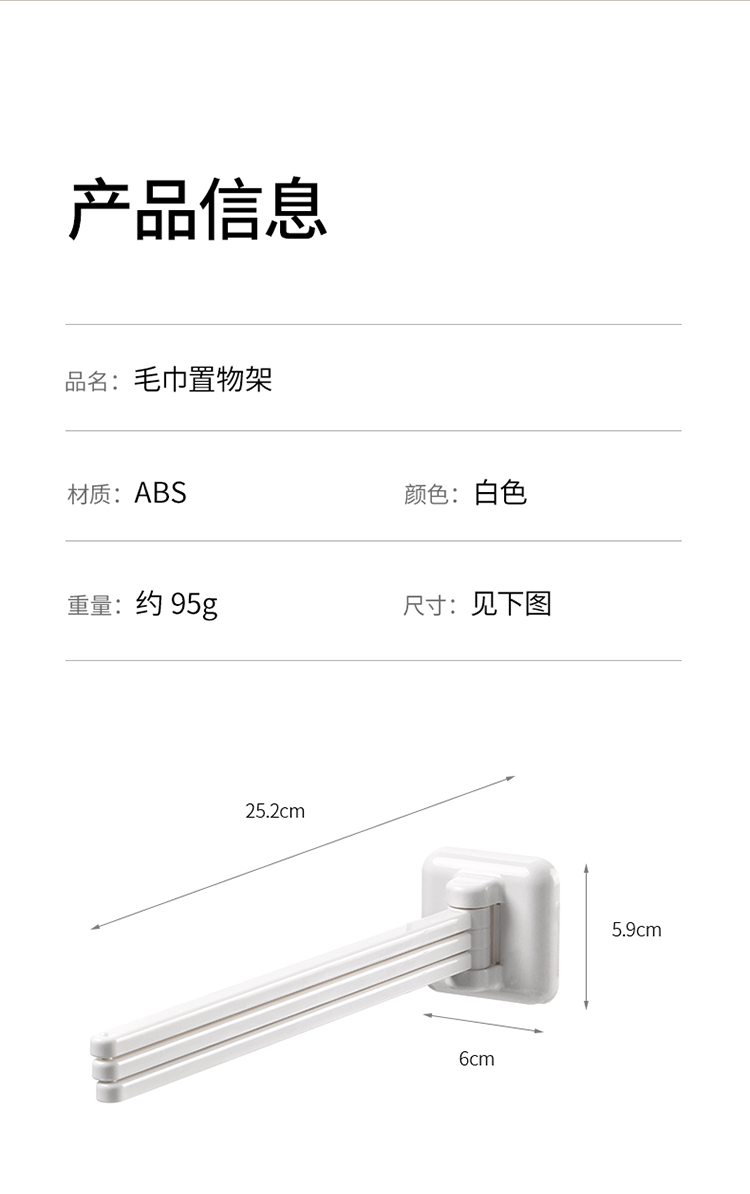 FaSoLa卫生间毛巾置物架免打孔墙上壁挂毛巾杆可旋转浴室收纳挂架