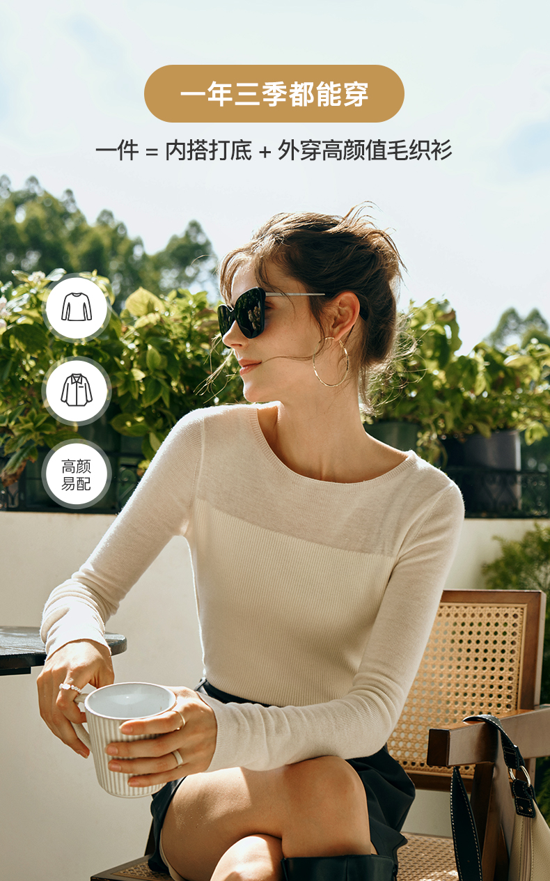OLrain欧芮儿长袖圆领毛衣女初秋2023新款修身内搭套头打底针织衫
