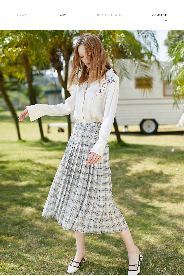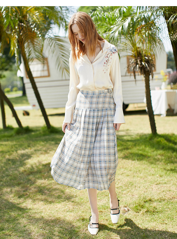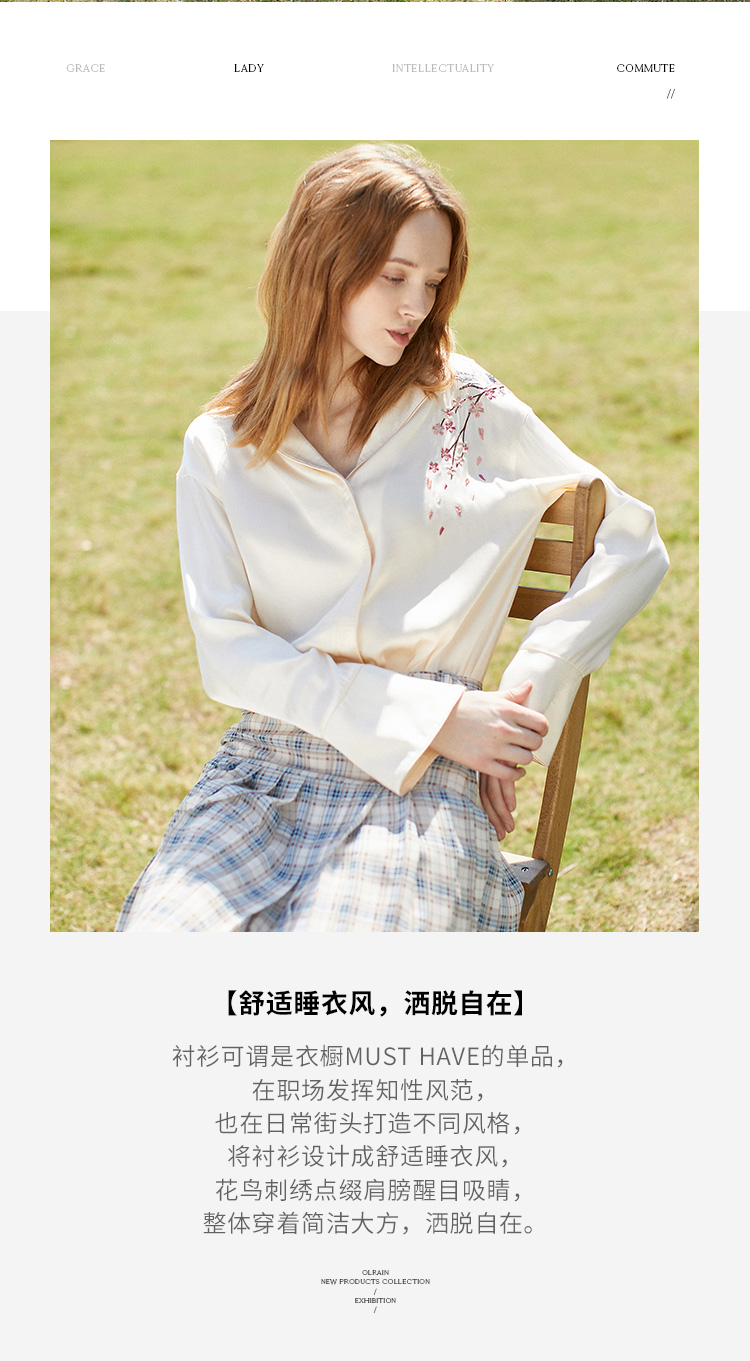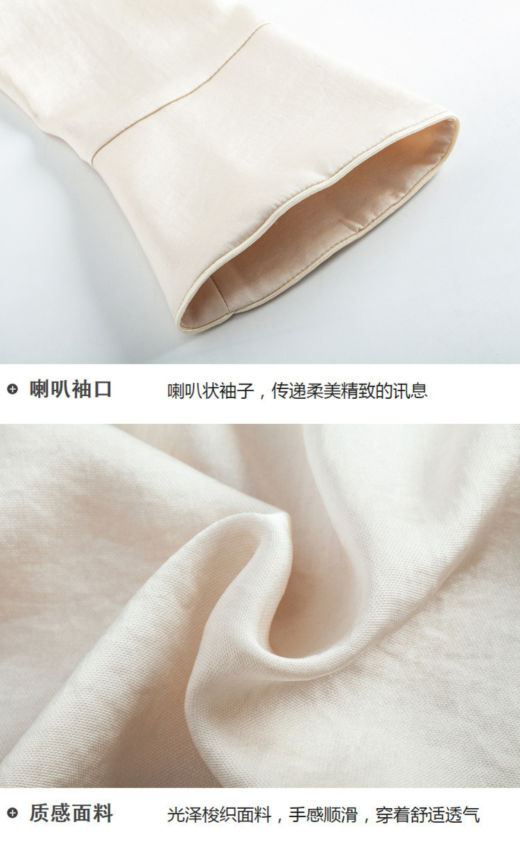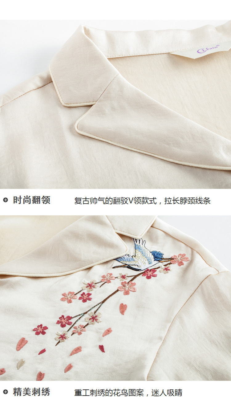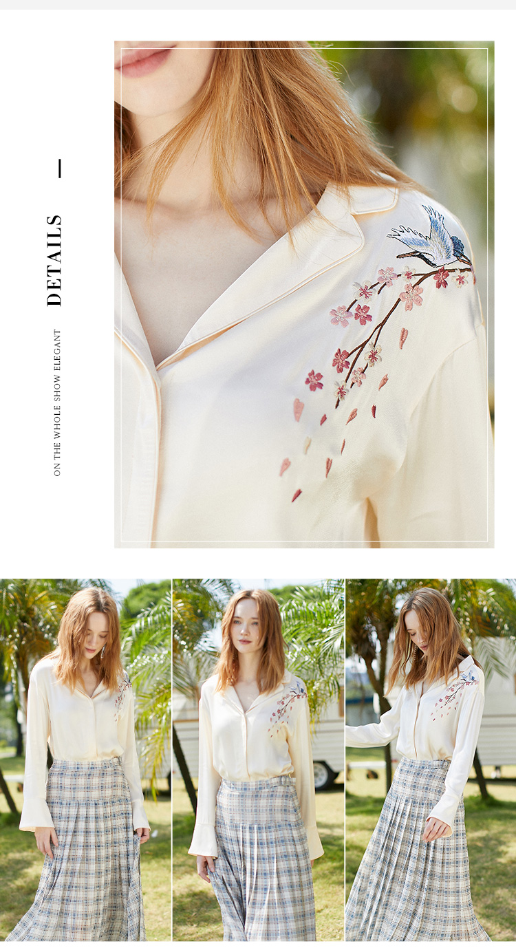 欧芮儿2022春装新款喇叭袖睡衣风刺绣衬衫女 复古百搭米白色衬衣