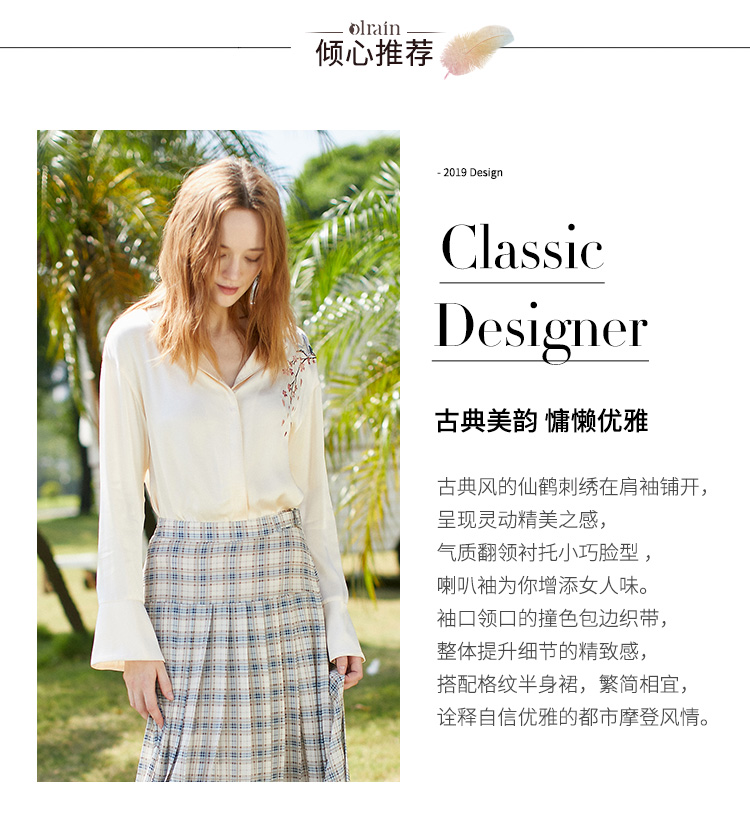 - “精致”是欧芮儿olrain品牌文化的核心,欧芮儿认为,精致的女人,不但要外在动人,更要内在迷人,内外兼修,有魅力、有气质、有内涵,自信而不自傲,优雅而不矫揉,自有万种风情而不轻浮,更不故作矜持。