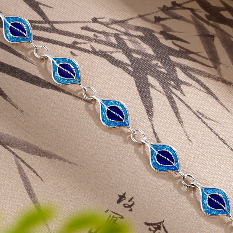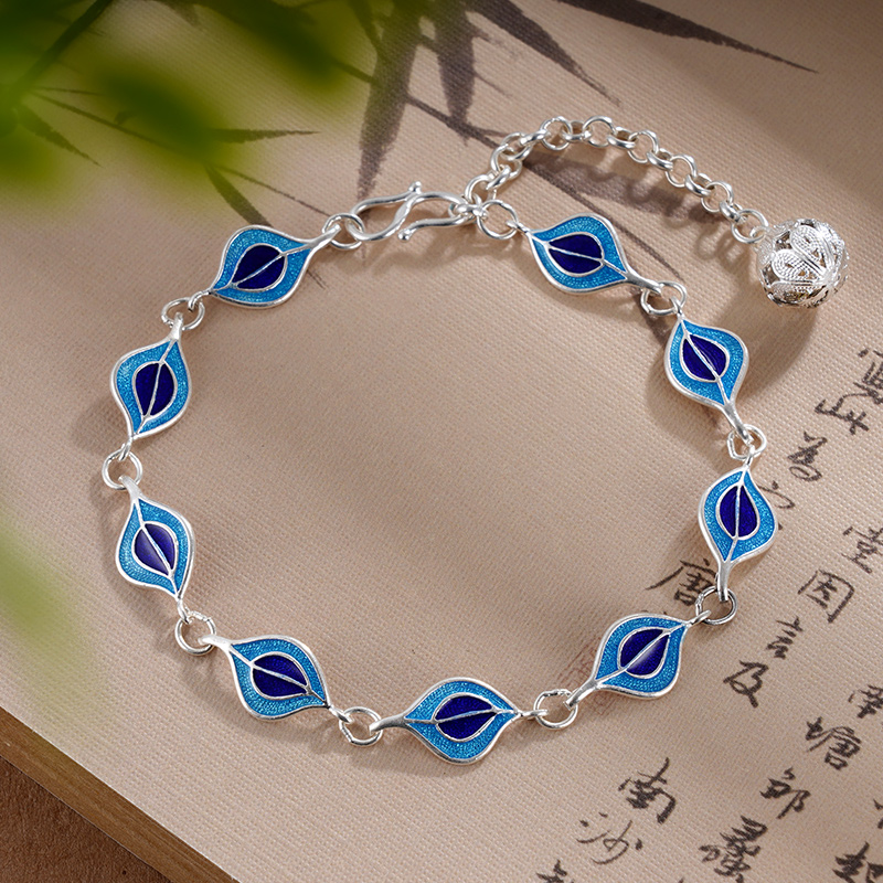 【寓意】:手链以叶子为灵感设计,采用花丝工艺编织,上有珐琅点染,深浅搭配,绚丽灵动。寓意一“叶”生财,平安相伴。