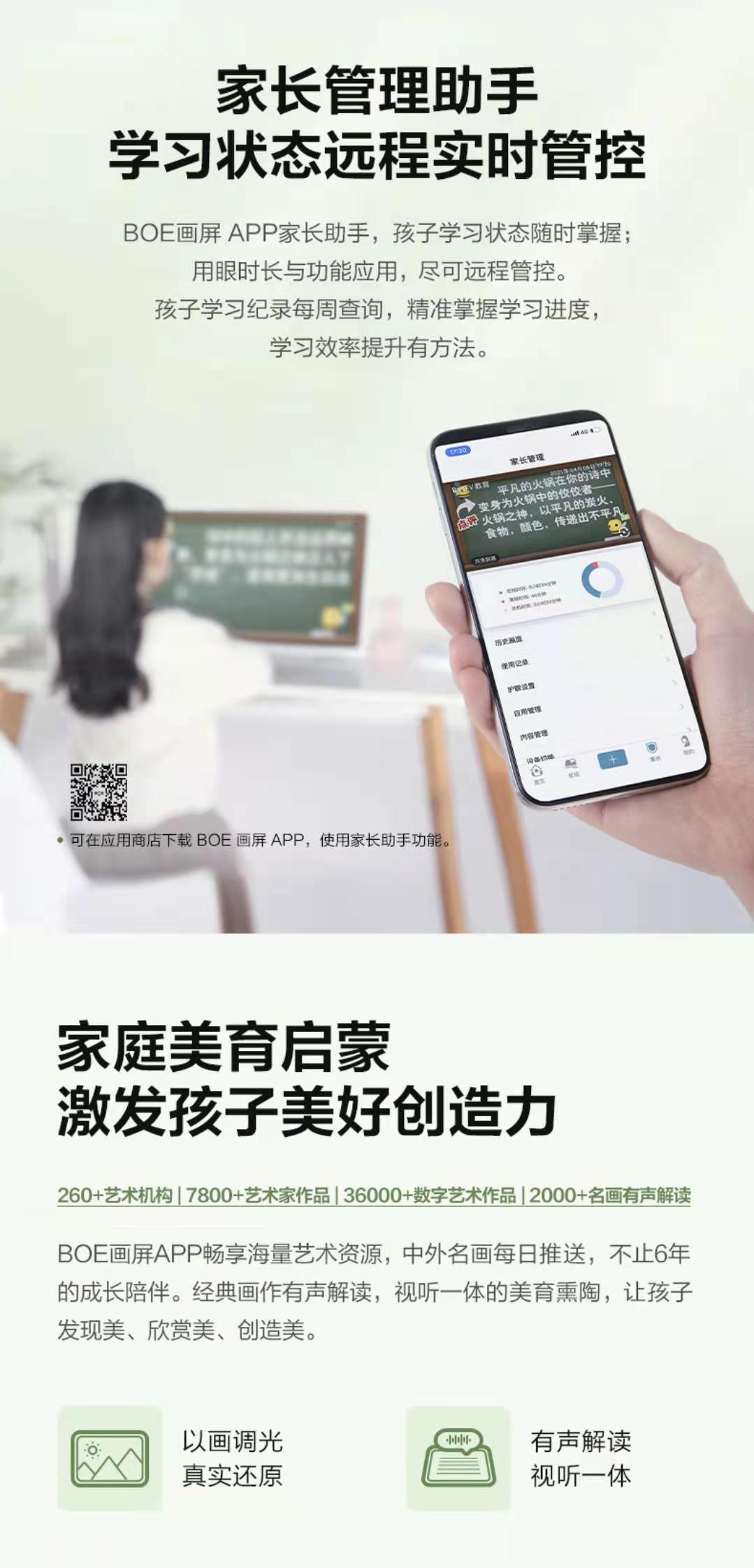 【注:凡购买 BOE 画屏 E2 的用户,可免费使用 BOE 画屏 APP,畅览 3 万多幅中外经典名画,2000 多 幅名作有声解读。】