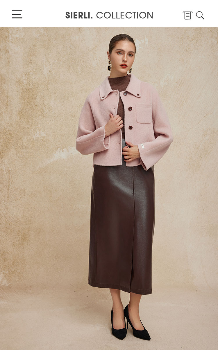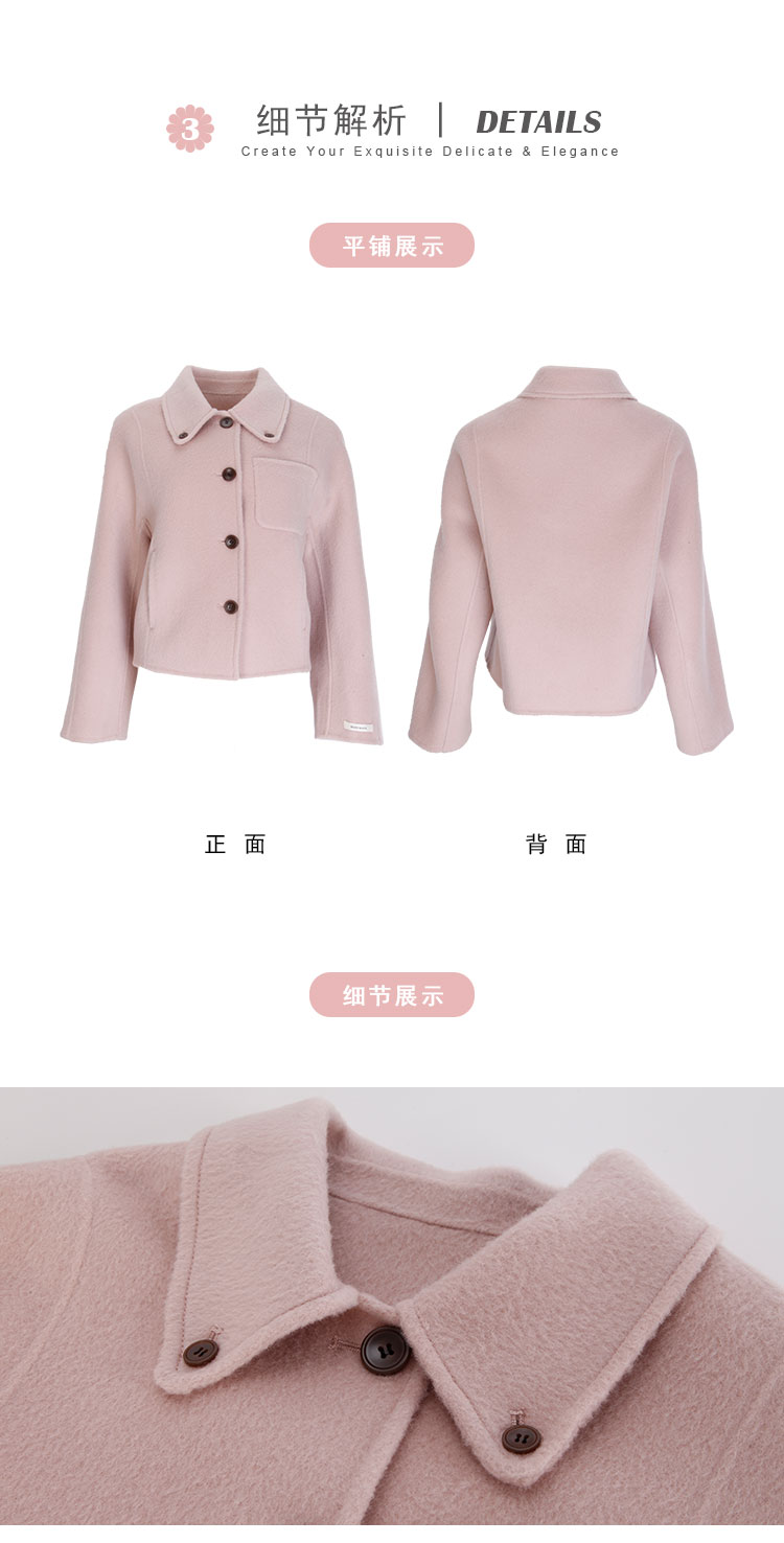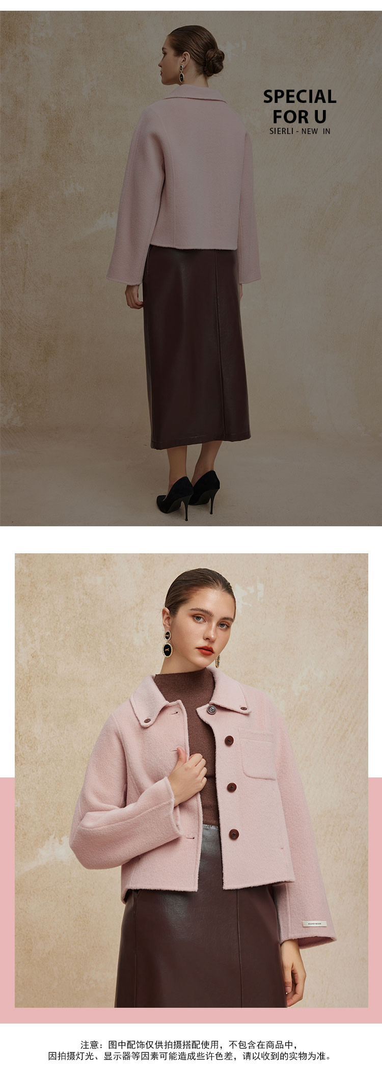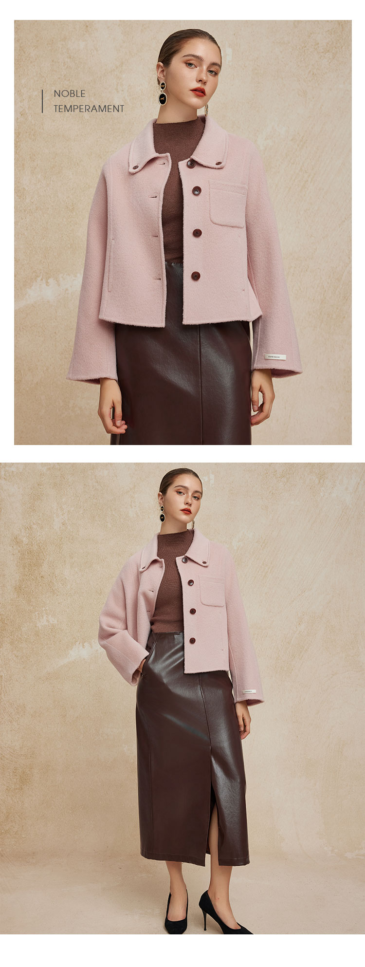 PH938斯尔丽24新款短款小方领小个子减龄时尚显高箱型双面呢大衣