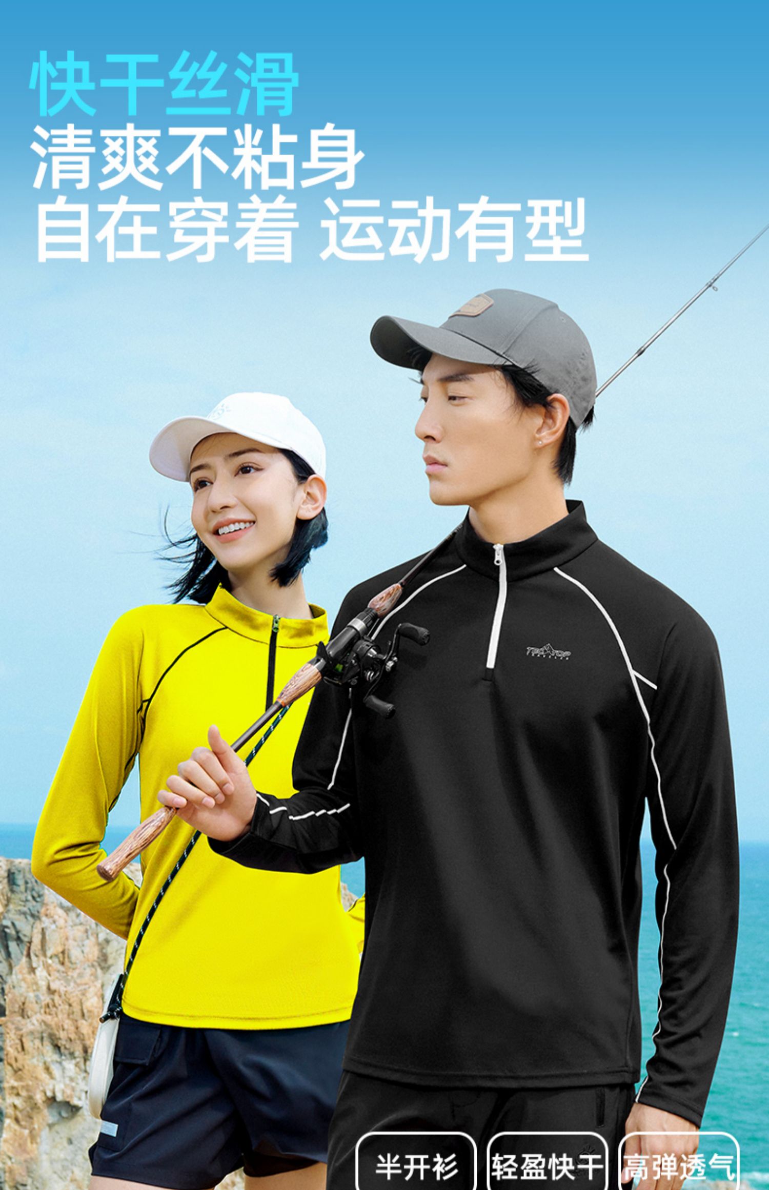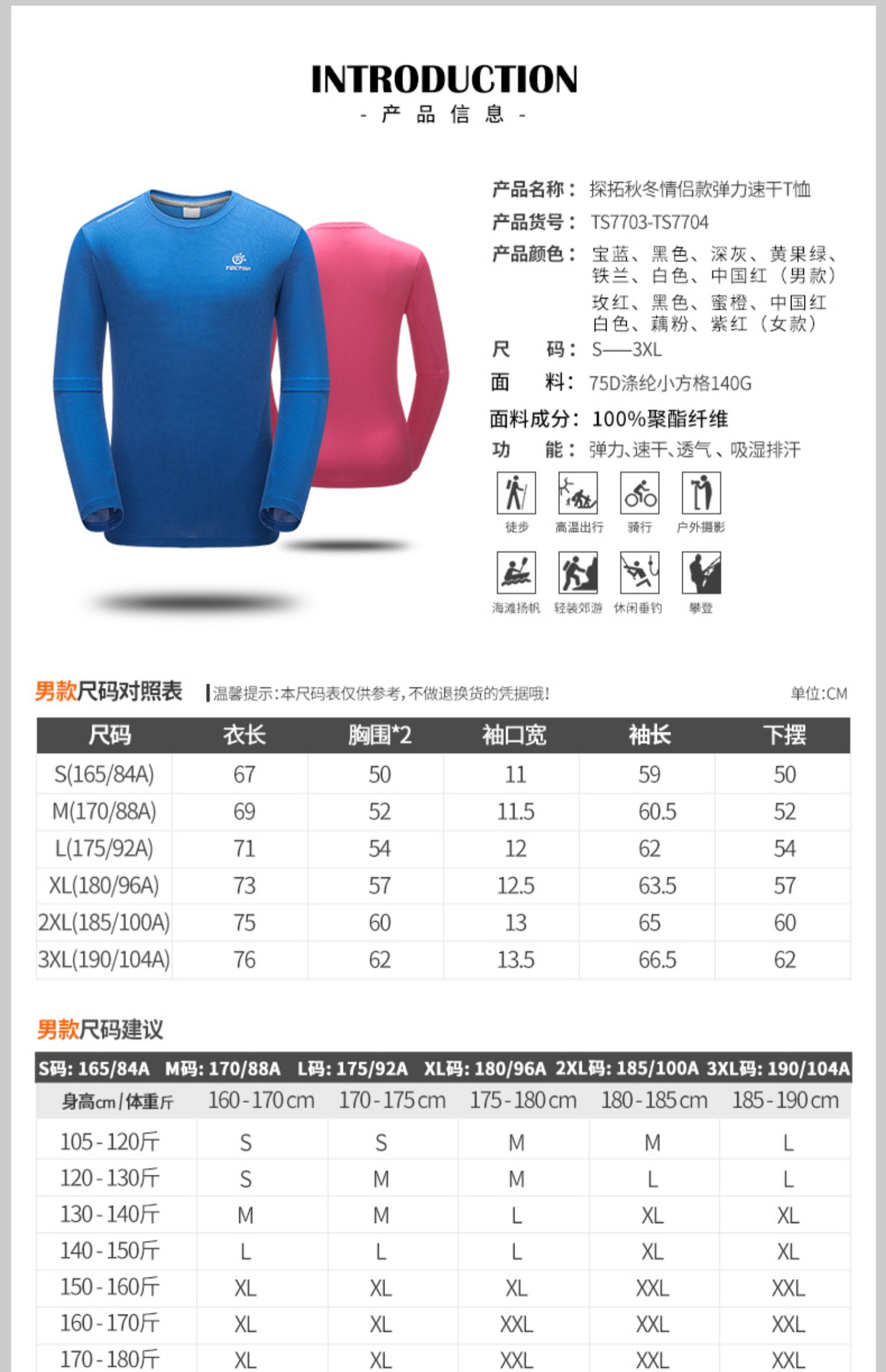 【48.8秒杀】探拓户外速干衣长袖T恤秋冬新款登山立领健身跑步运动上衣男女