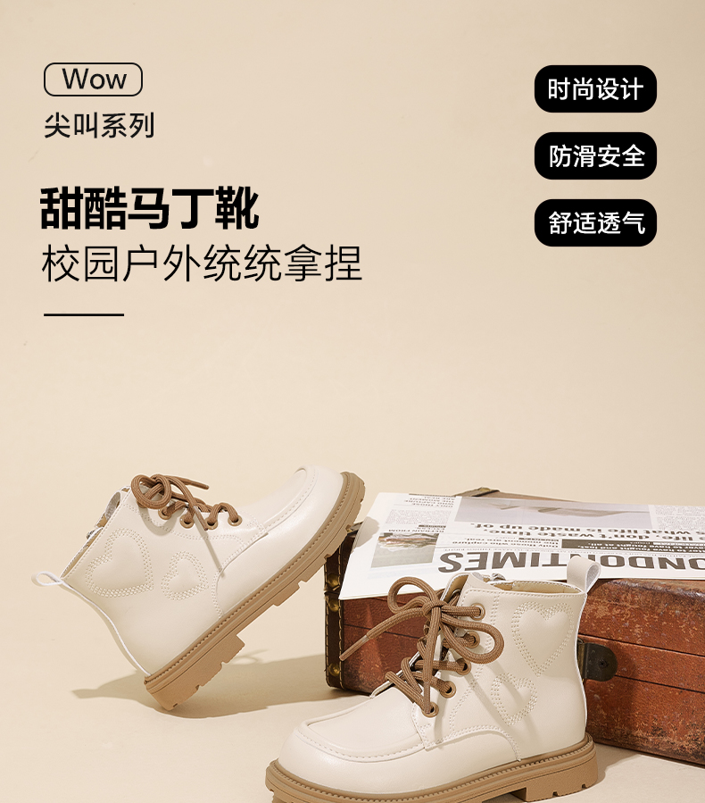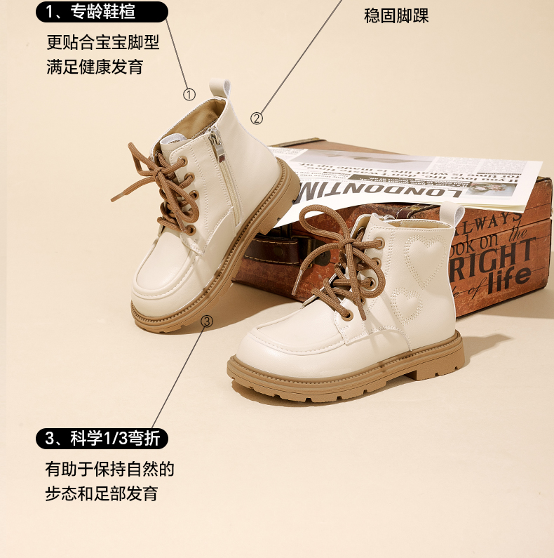 卡特兔童鞋儿童马丁靴男童2024秋冬新款软底防滑宝宝靴子女童皮靴