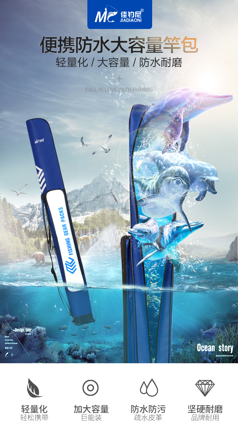 佳钓尼鱼竿包渔具包多功能轻便型钓鱼杆包超轻鱼包收纳袋硬壳背包