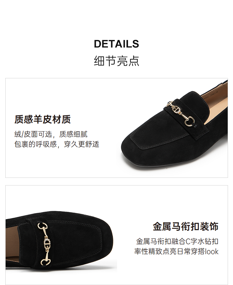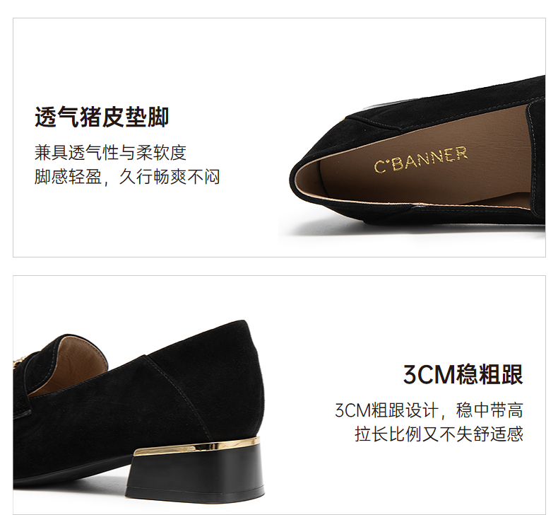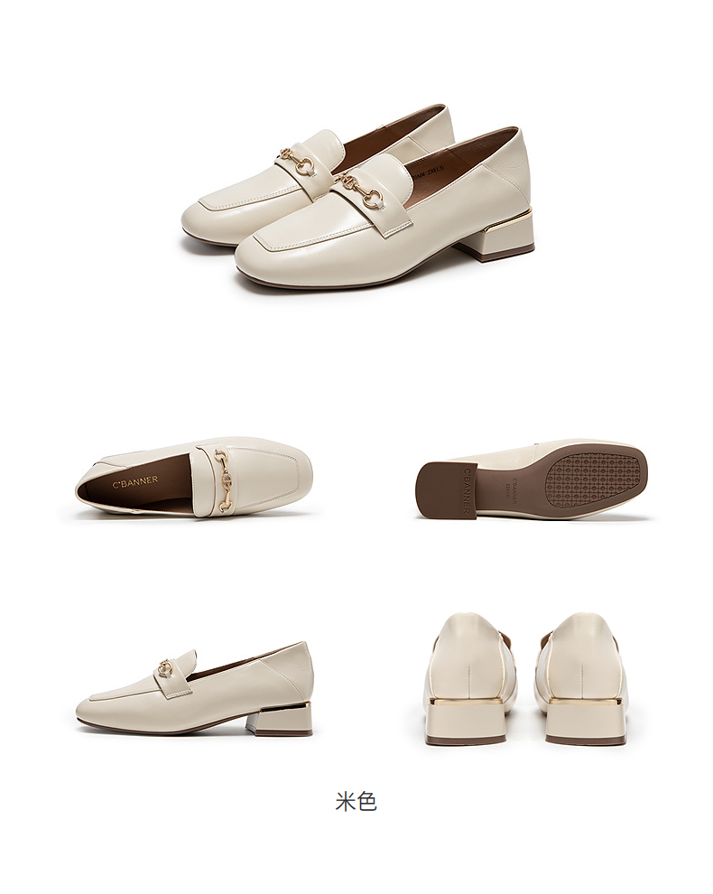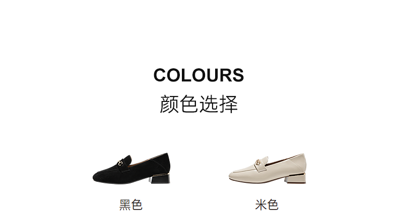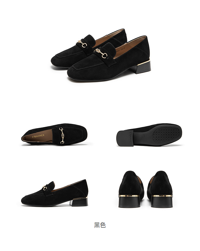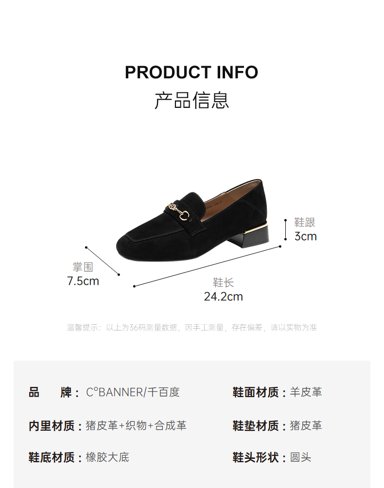 【静音系列】千百度粗跟乐福鞋女羊皮通勤深口单鞋A25449120