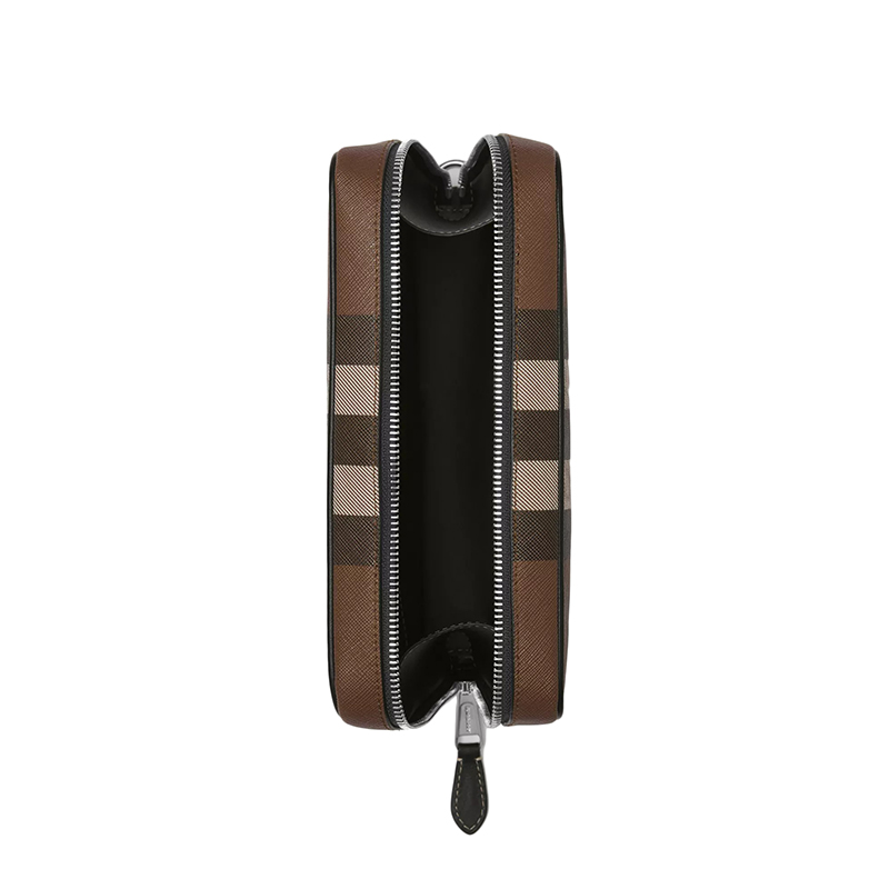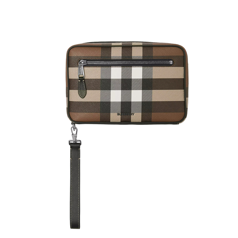 【包税】BURBERRY/博柏利 21秋冬新款 男士深桦木棕色格纹拼皮革拉链手拿包80492151