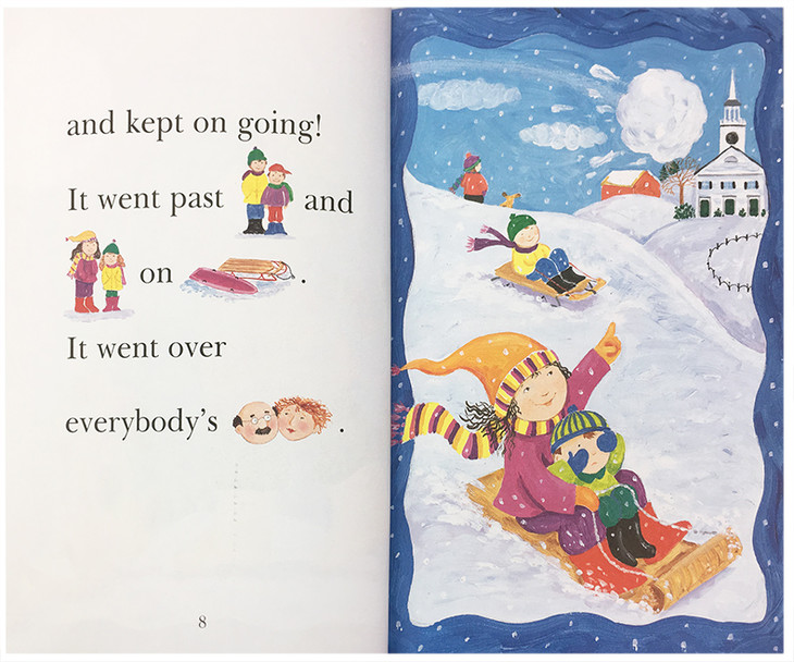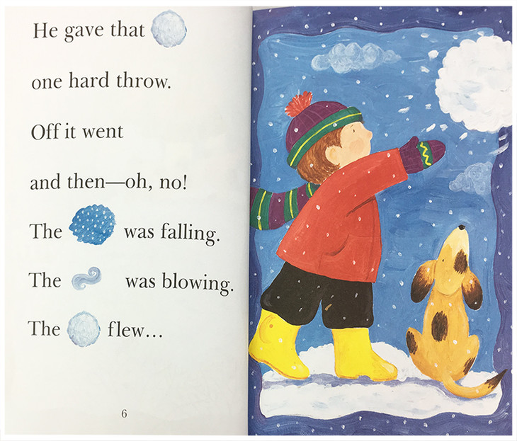 Rebus pictures, simple vocabulary, and a rhyming text tell the story of a small boy and his runaway snowball.