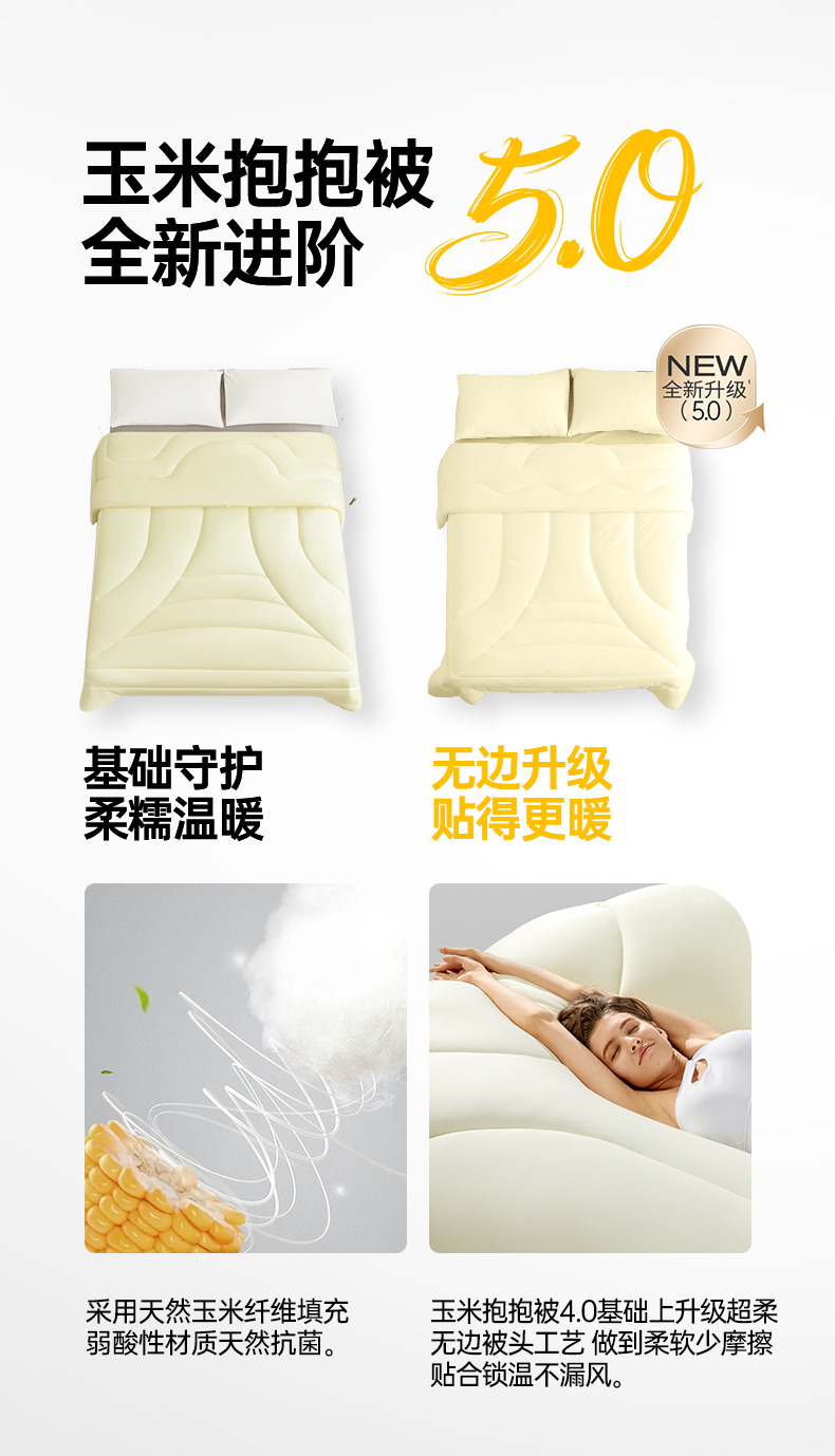 【5.0升级款冬被】绘睡玉米抱抱被 四季款/冬款 玉米纤维填充,婴童A类安全标准;三重柔软技术 云柔无边被头,减少睡眠干扰