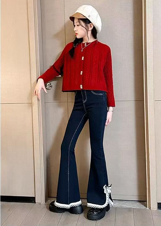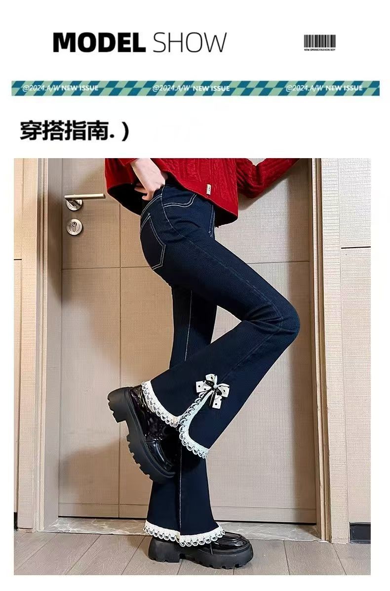 【第三款】西蒙日记·白花边款开叉喇叭裤DLHBHBKC
