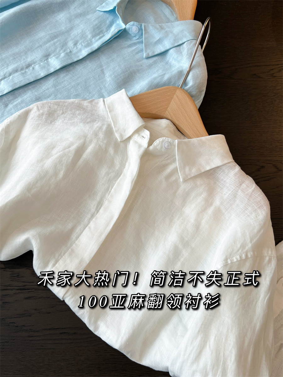 【15天内发出】亚麻苎麻老钱风衬衫 翻领长袖上衣衬衫 薄款麻料防晒衬衣外套