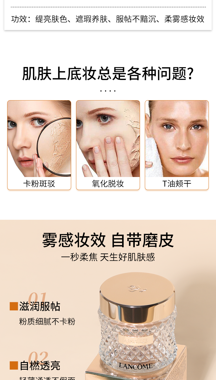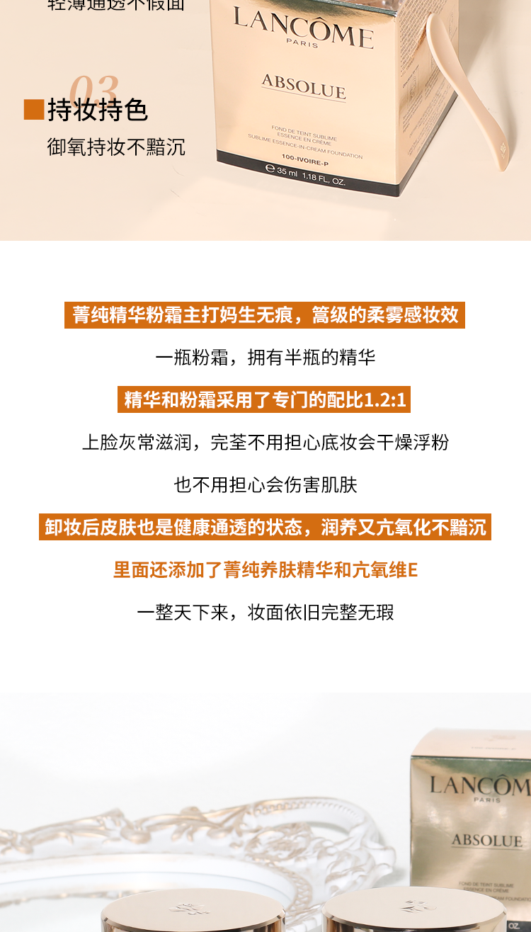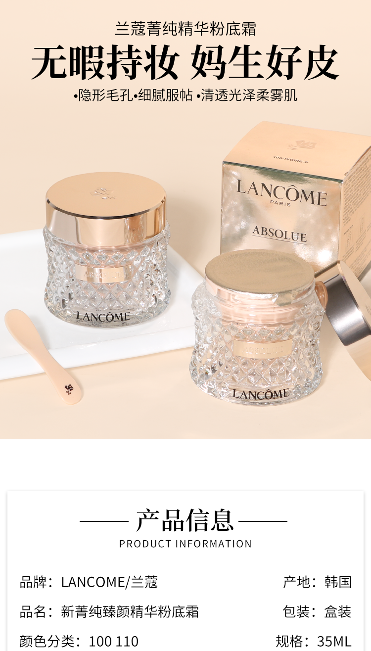 兰蔻新菁纯粉底霜35ML 遮瑕养肤服帖不暗沉底妆持久控油遮瑕