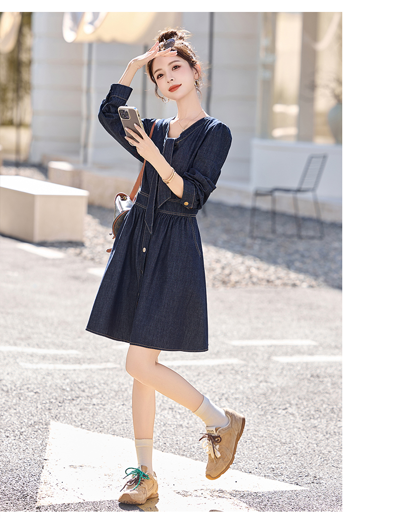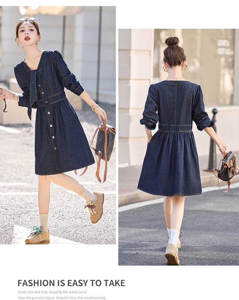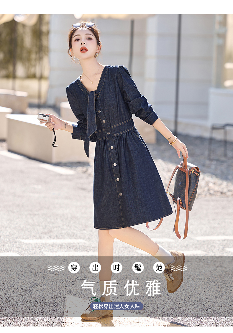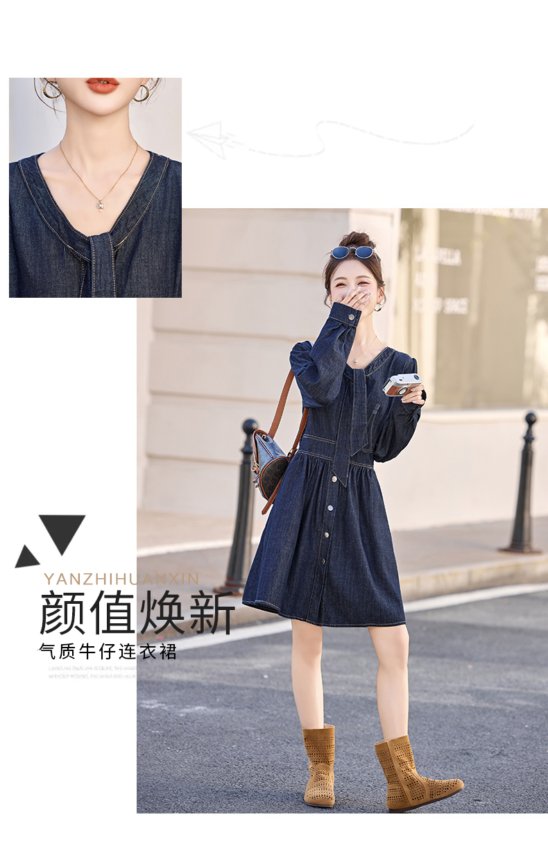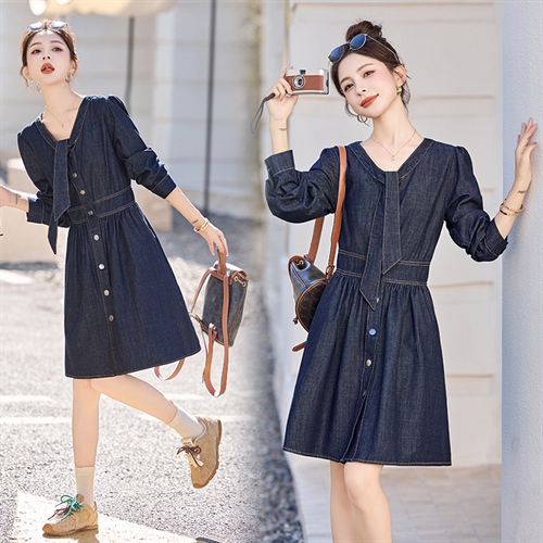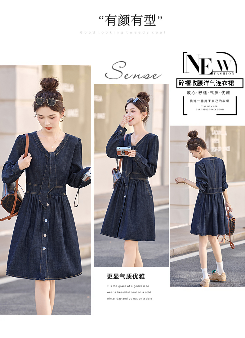 时尚牛仔连衣裙,气质小个子显瘦裙子中长款裙子HR-DMGY2601