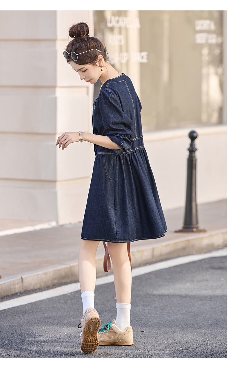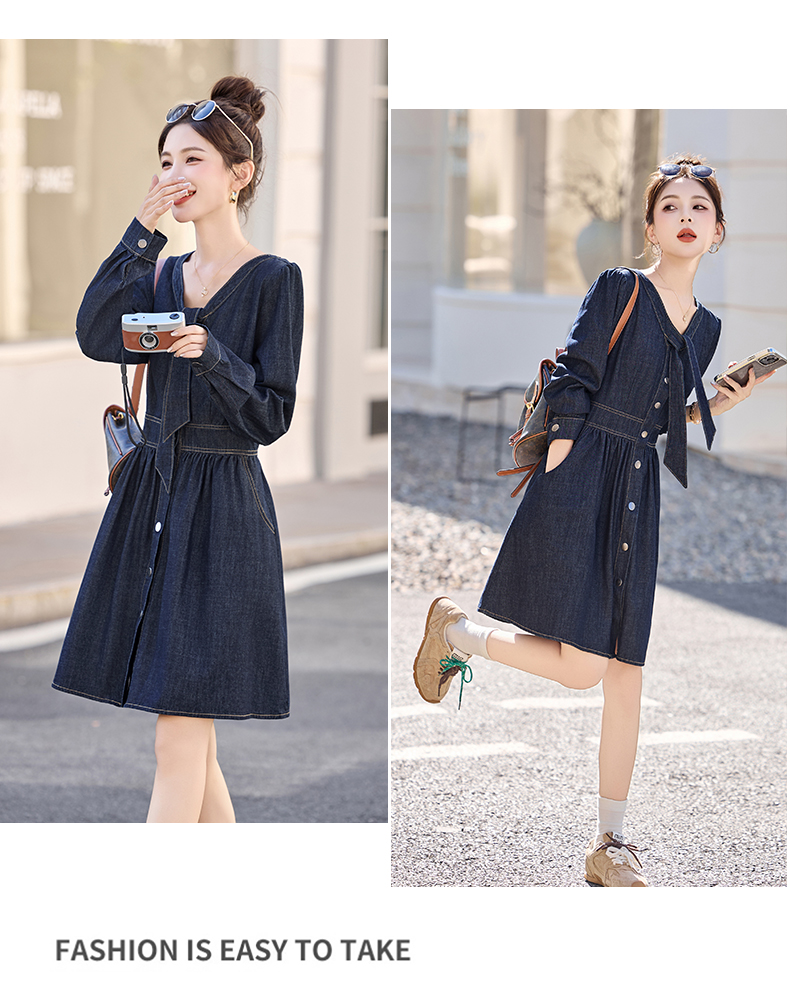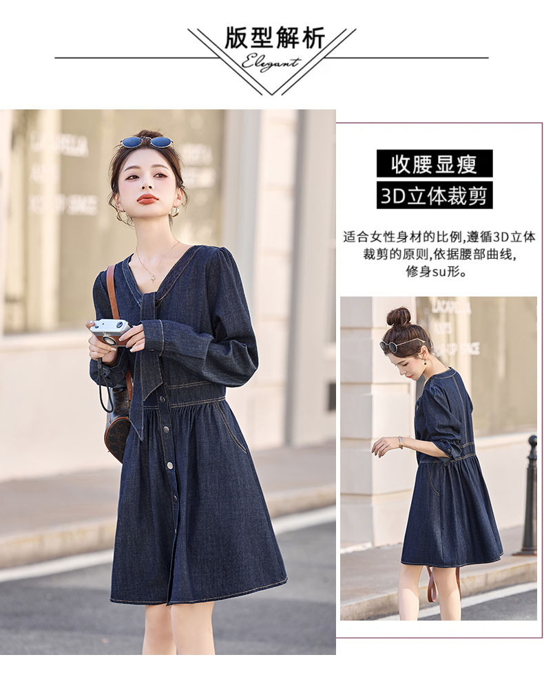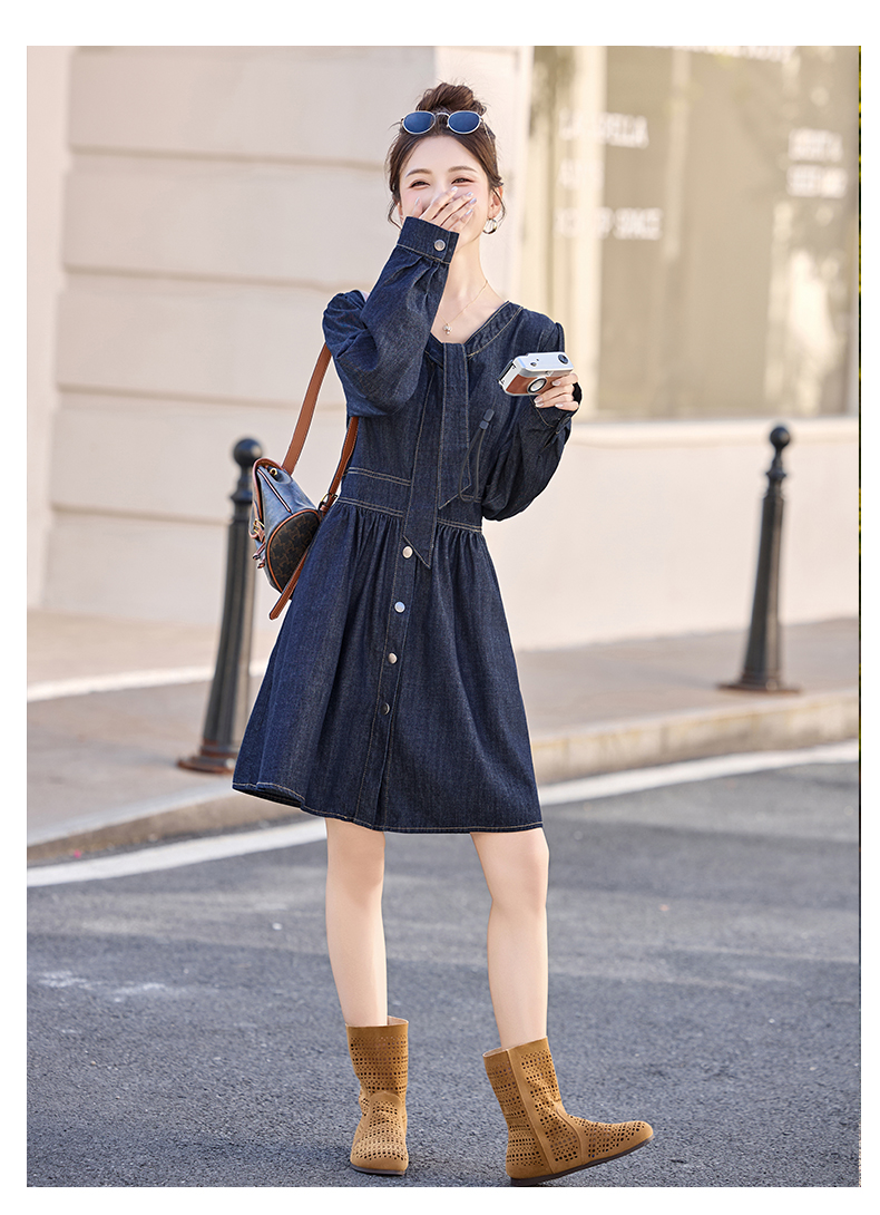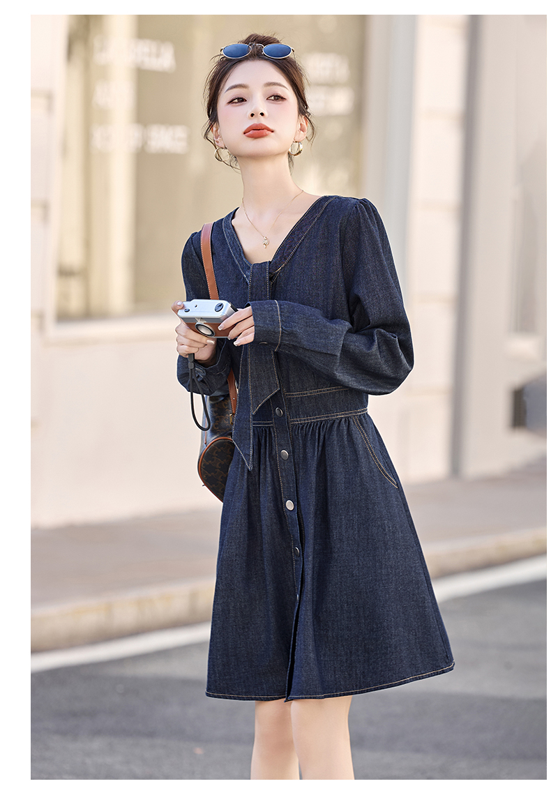 时尚牛仔连衣裙,气质小个子显瘦裙子中长款裙子HR-DMGY2601