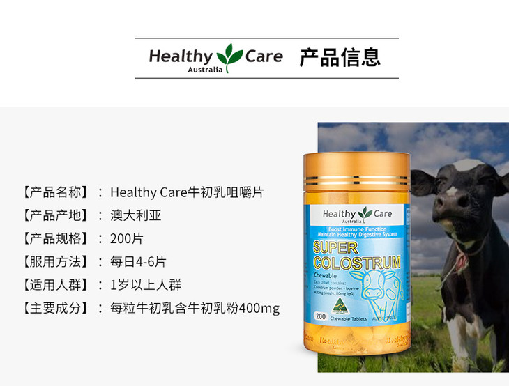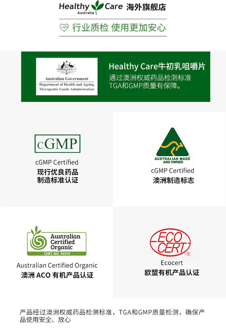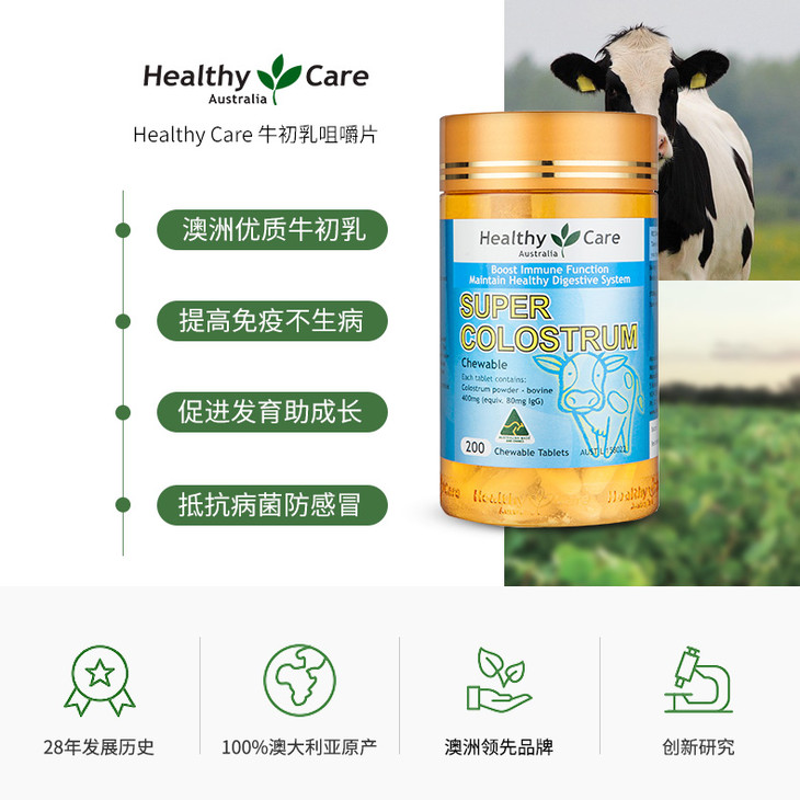 澳洲Healthy Care牛初乳咀嚼片200片全家通用