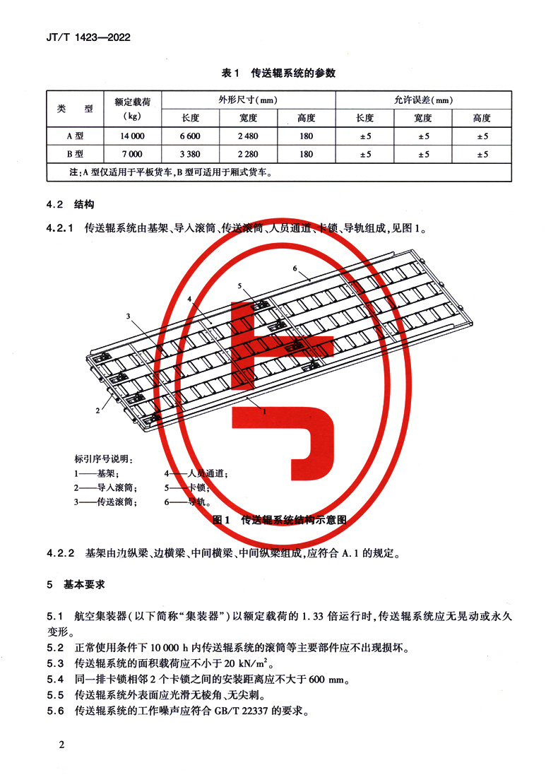 航空集装器运输车传送辊系统技术要求(JT/T 1423—2022)
