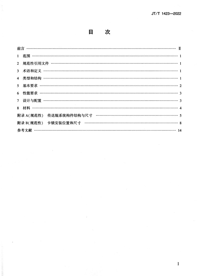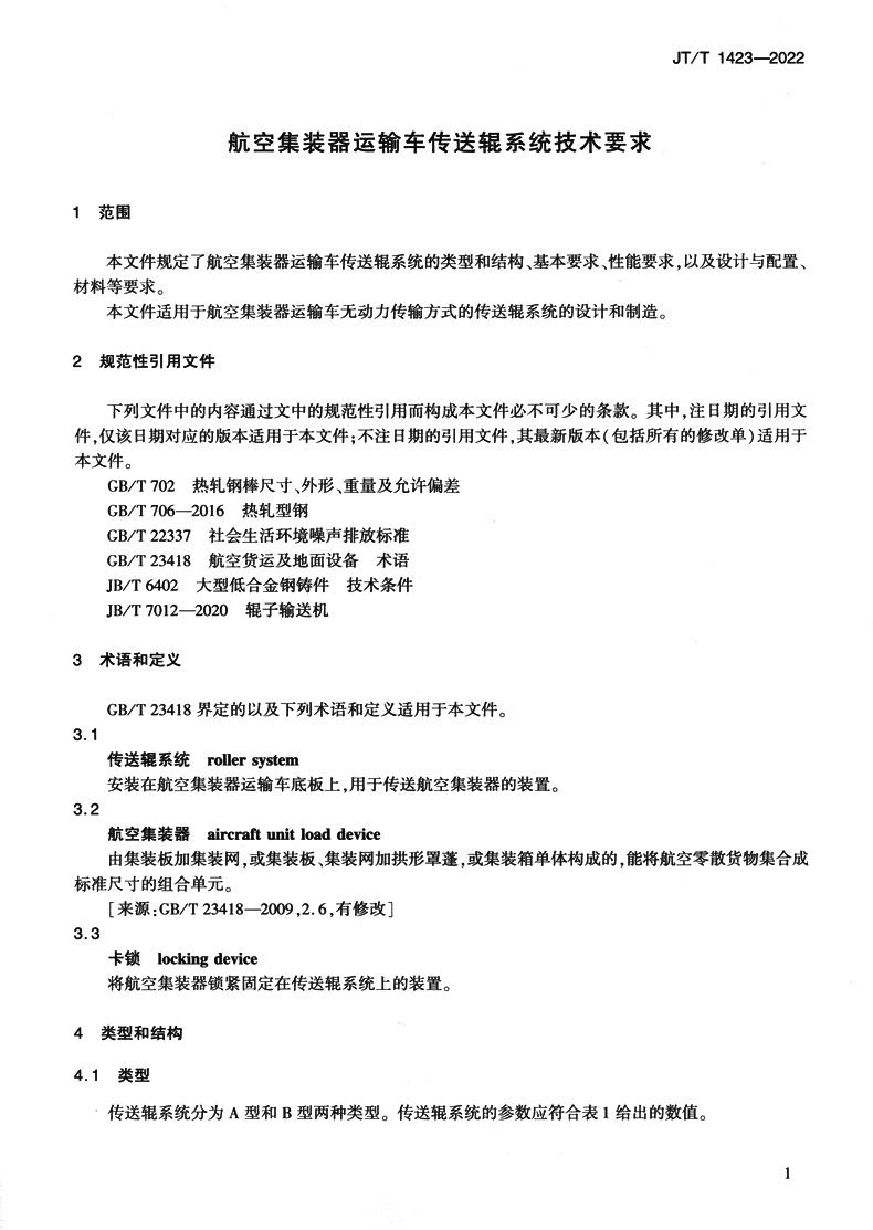 书名:航空集装器运输车传送辊系统技术要求(JT/T 1423—2022)