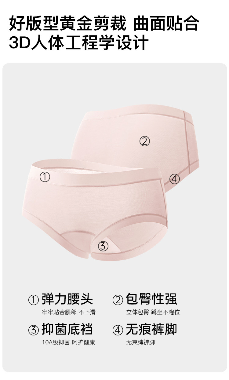 奶氧小裤 4条装(VIP)【丝滑莫代尔 10A抑菌】4条装薄款透气纯棉裆女士内裤