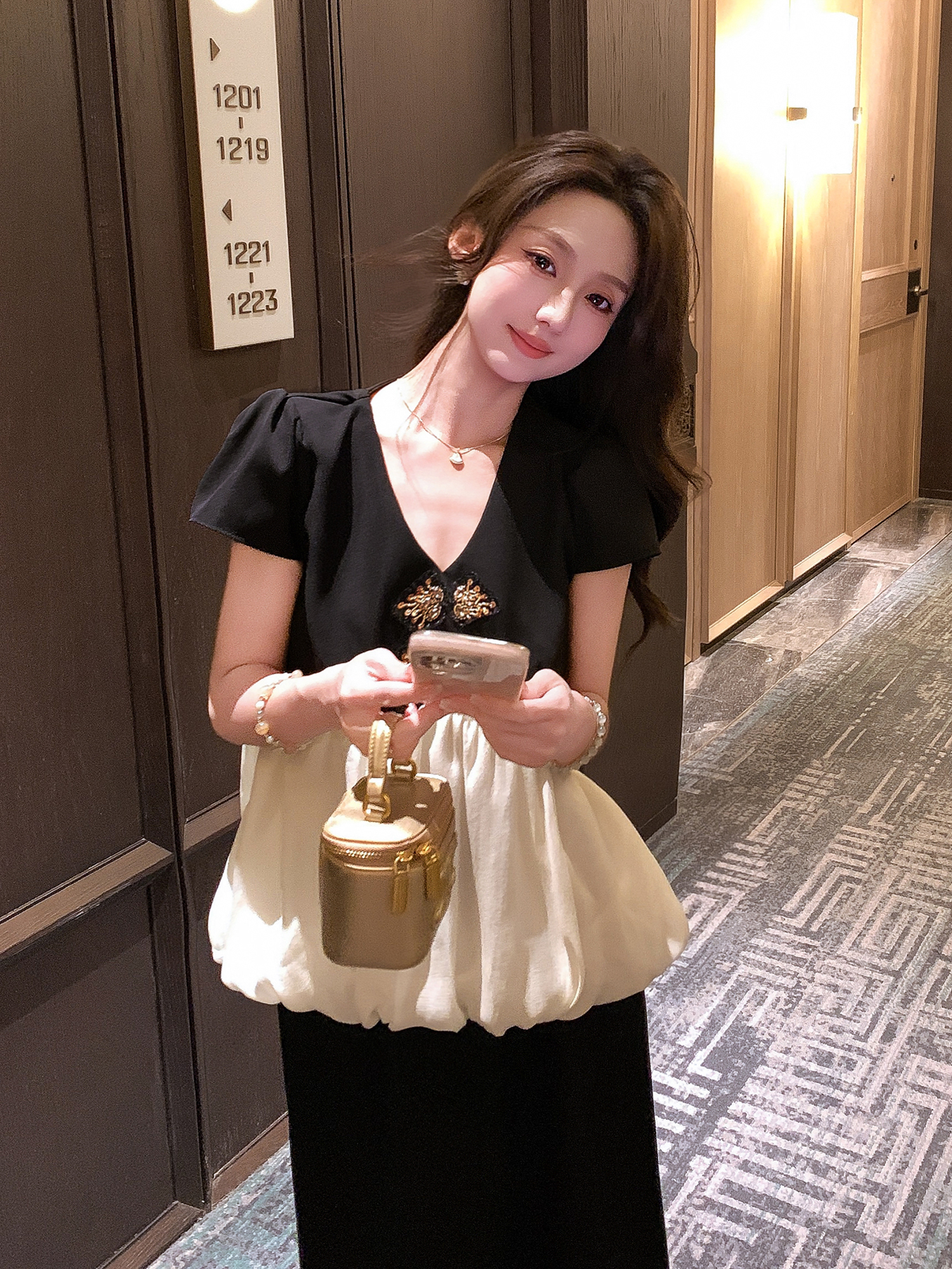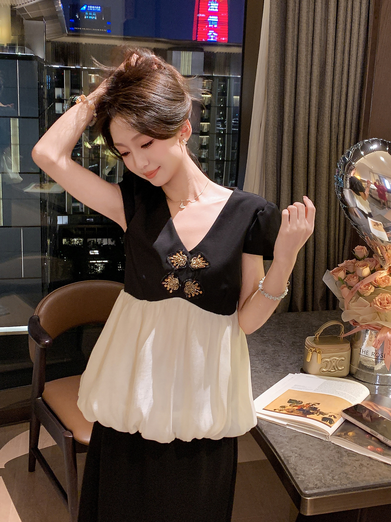 张心子【黑天鹅】V领气质盘扣气质显瘦上衣 U2507009