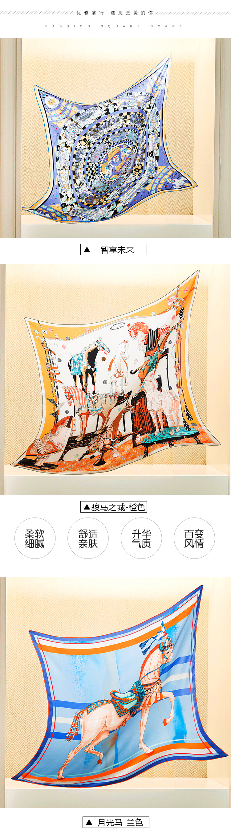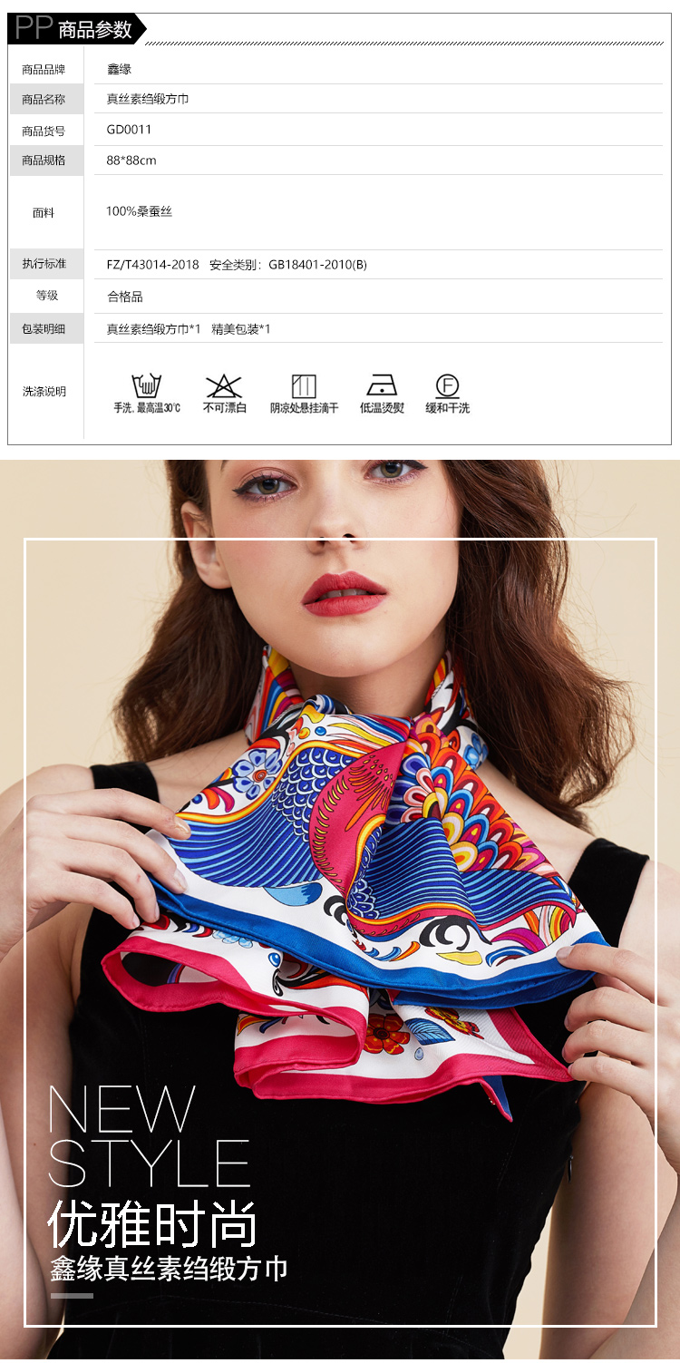 真丝素绉缎方巾 GD0011