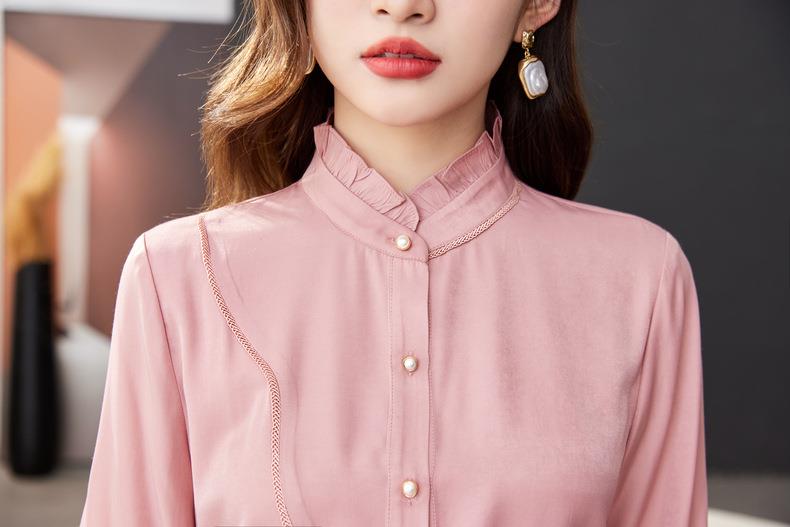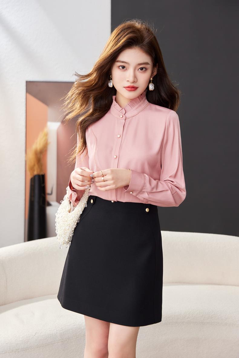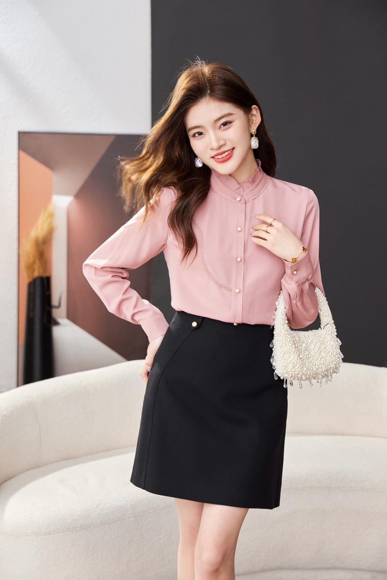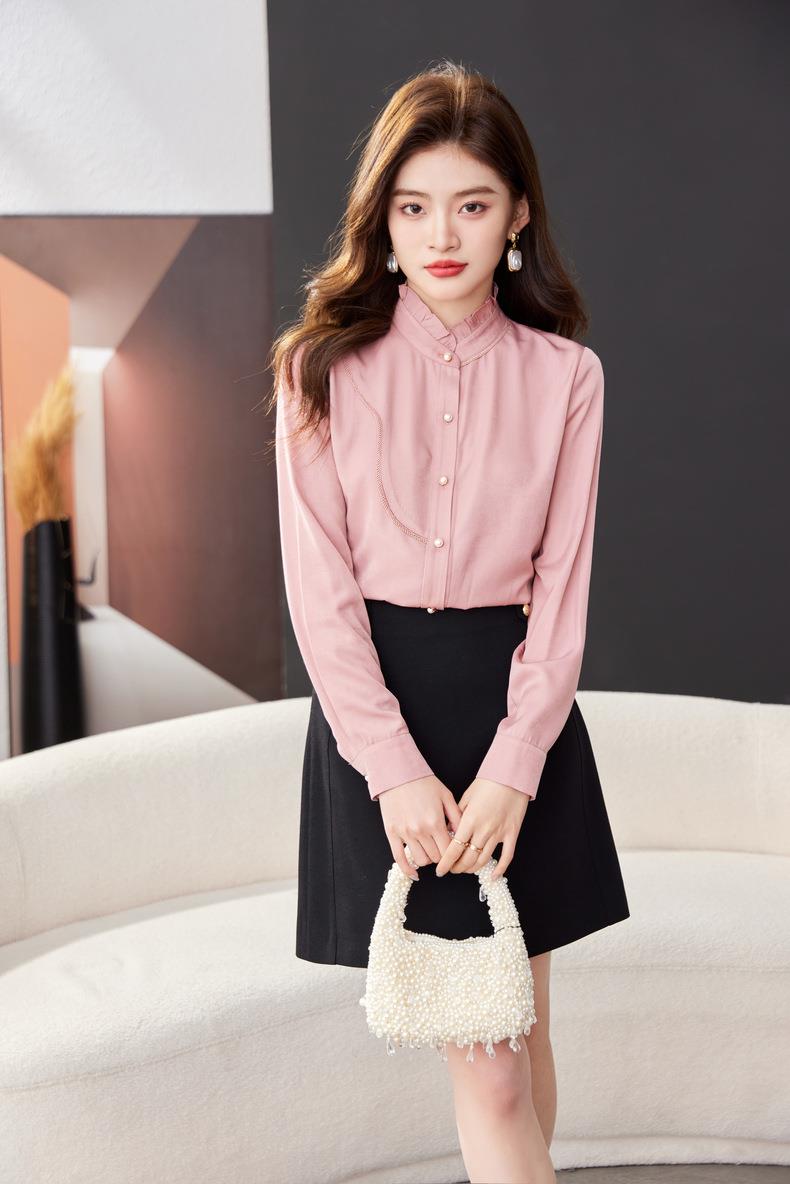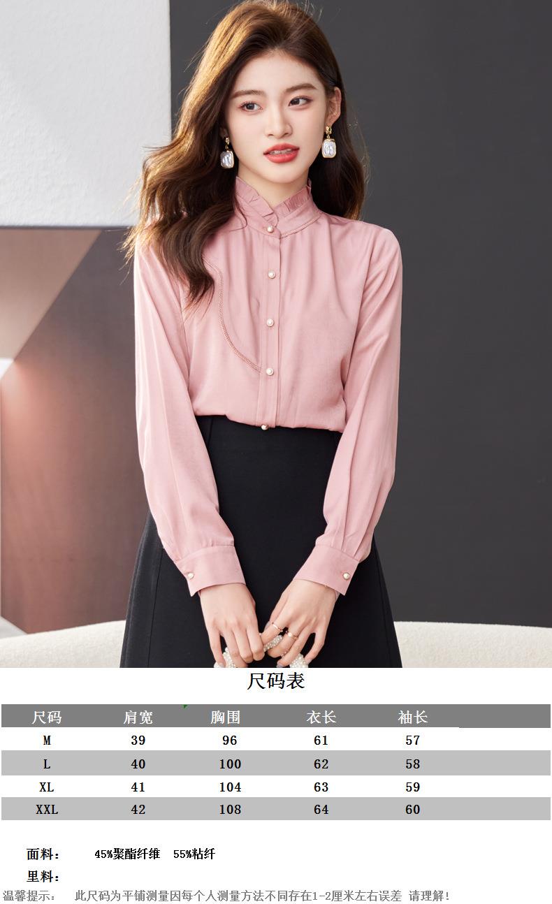 立领雪纺衫女上衣2024春装新款职业洋气小衫长袖女衬衣1783