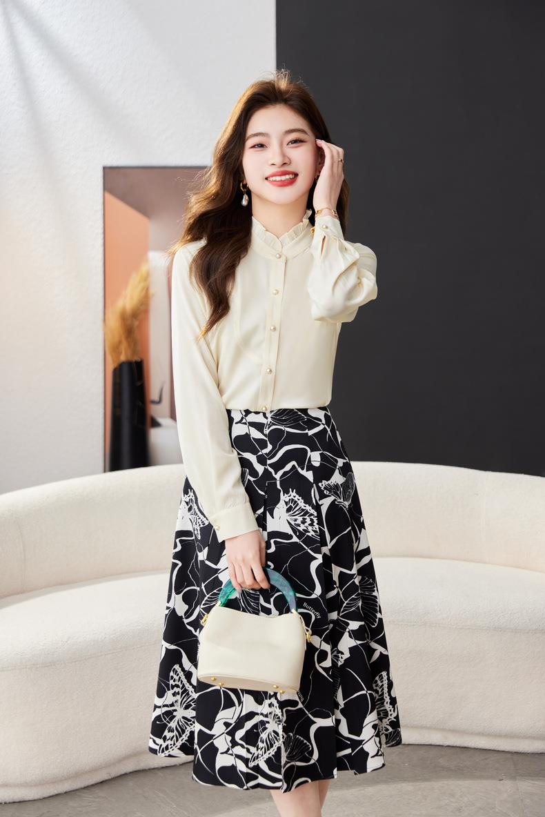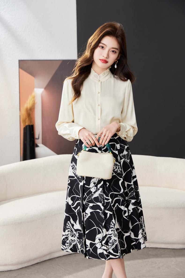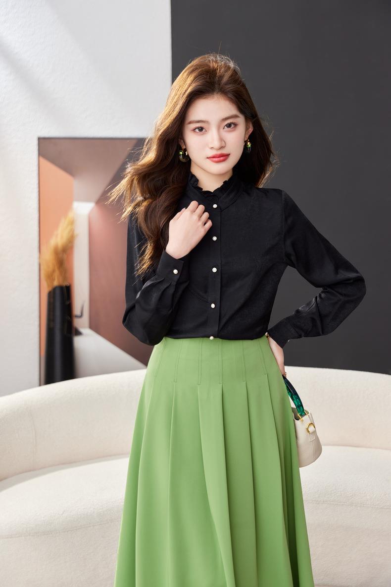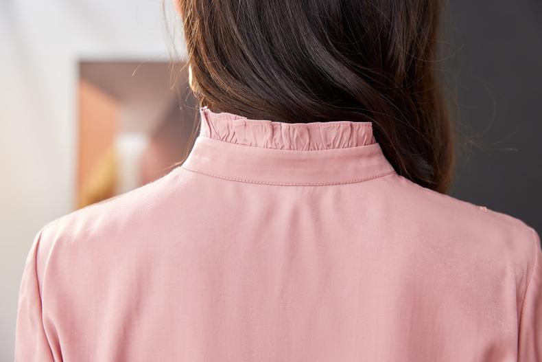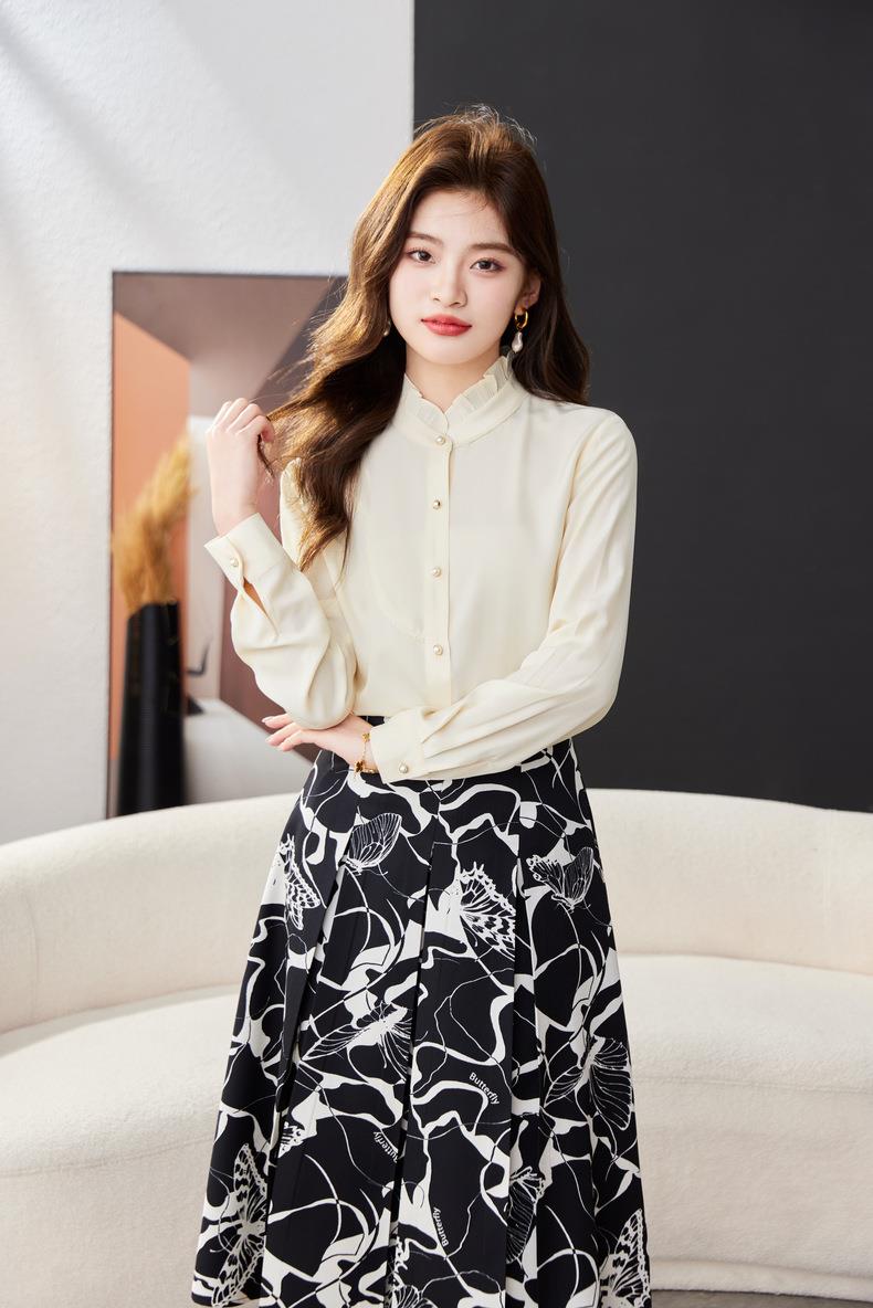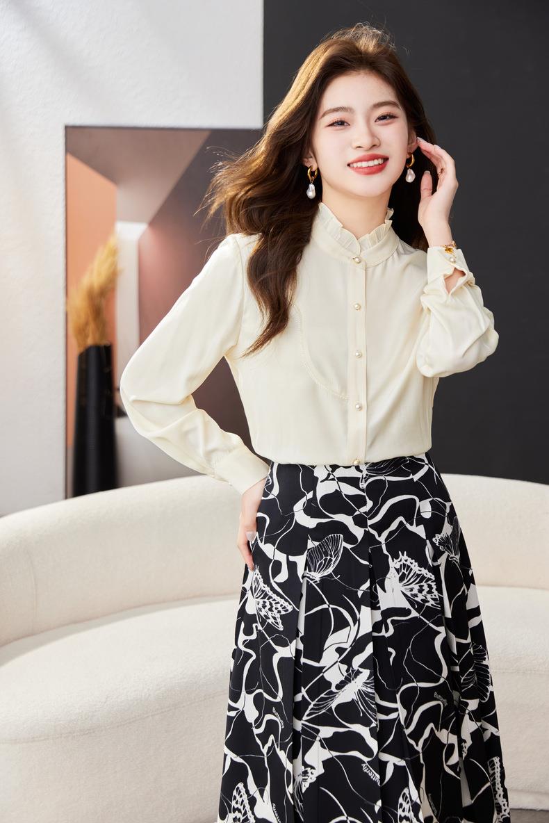 立领雪纺衫女上衣2024春装新款职业洋气小衫长袖女衬衣1783