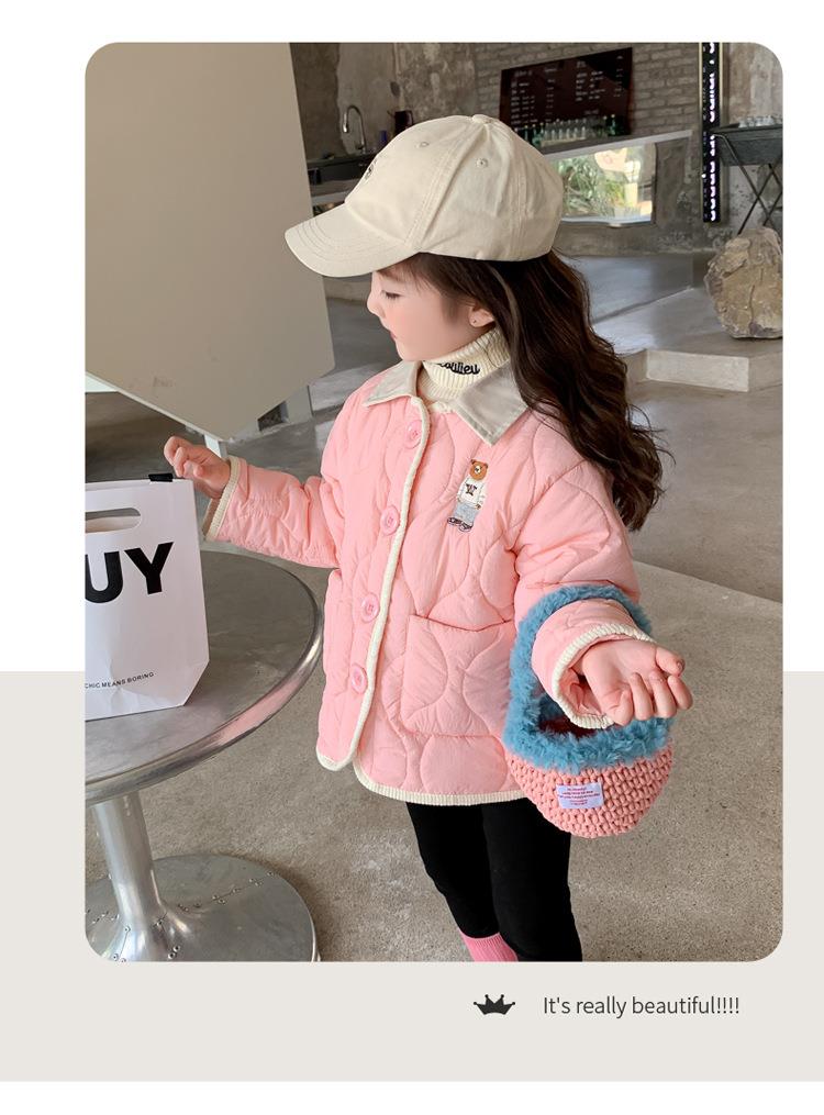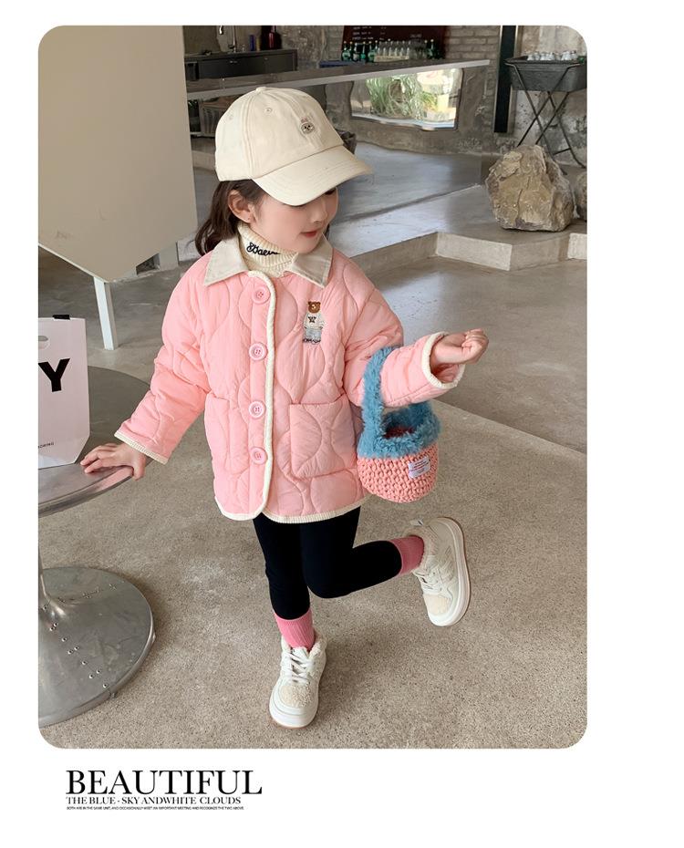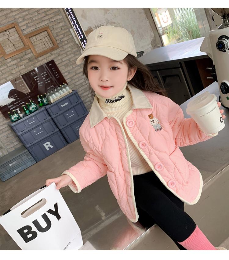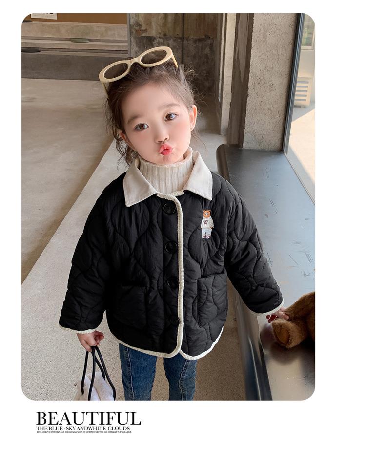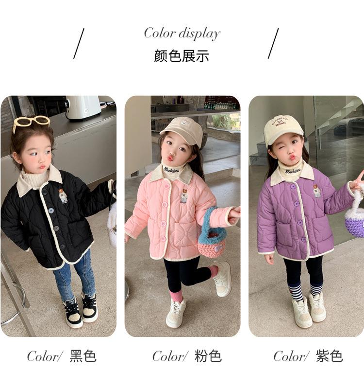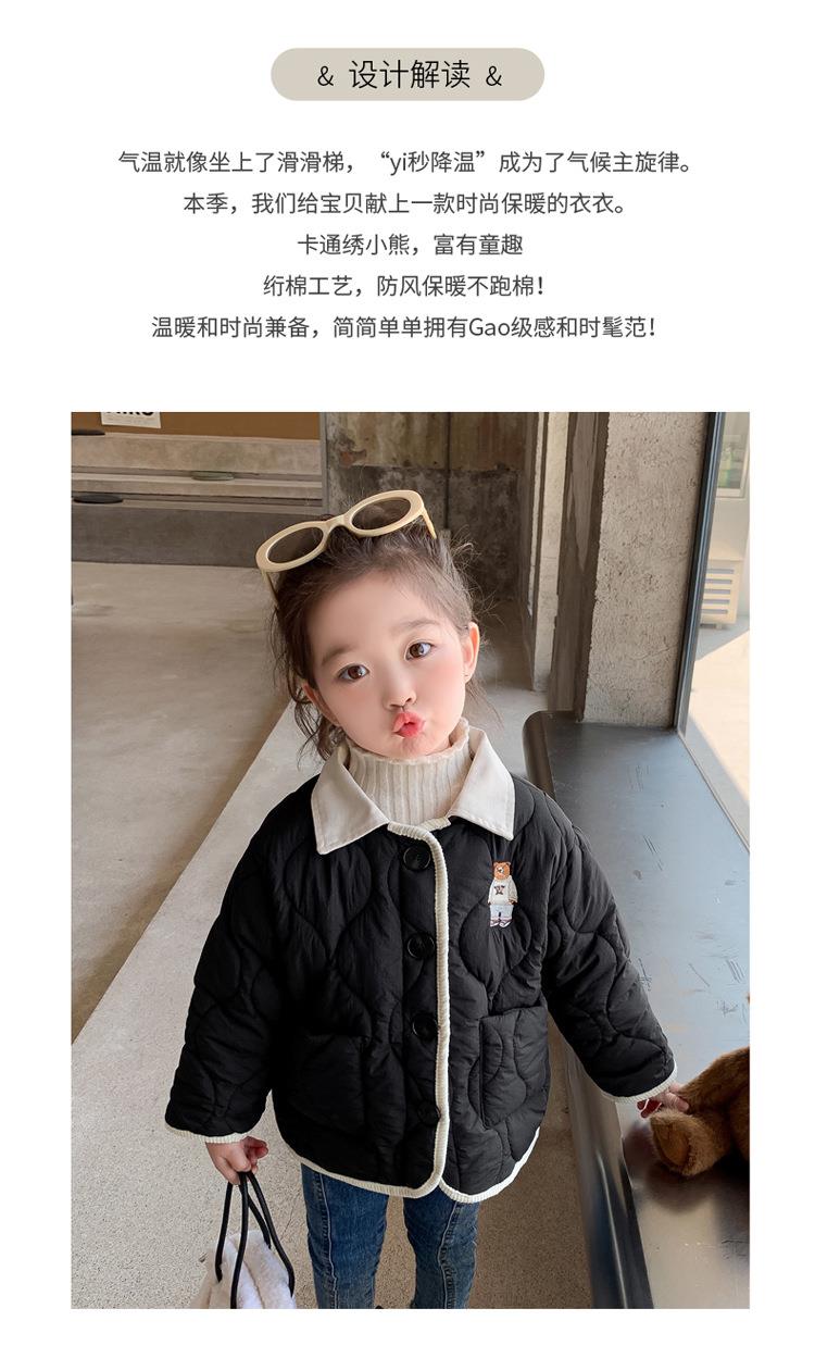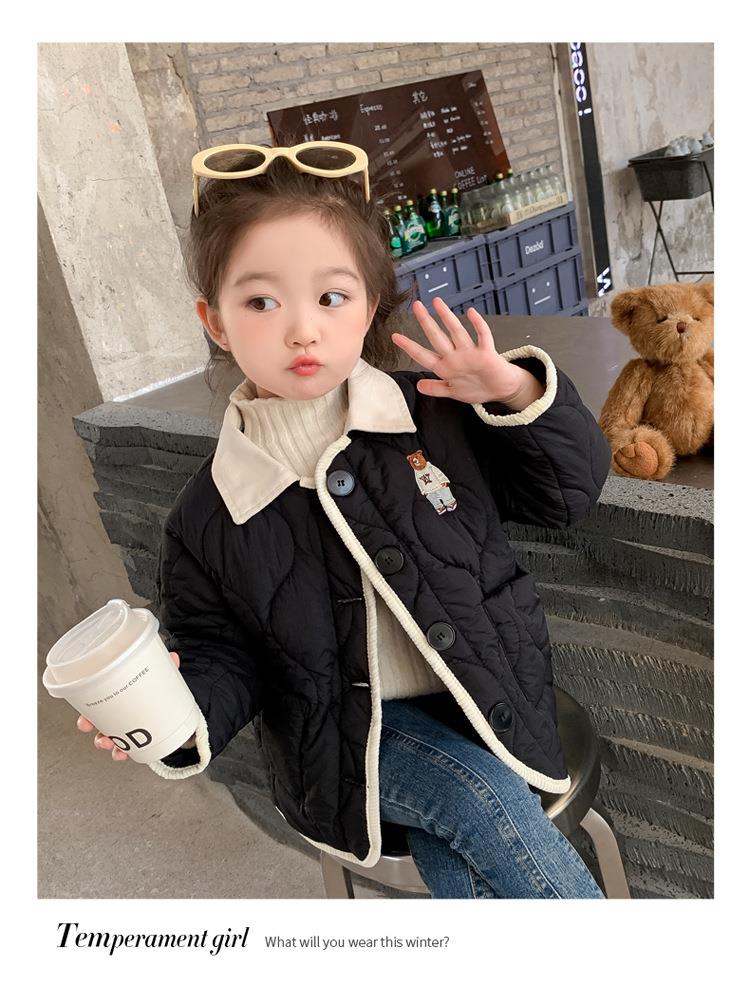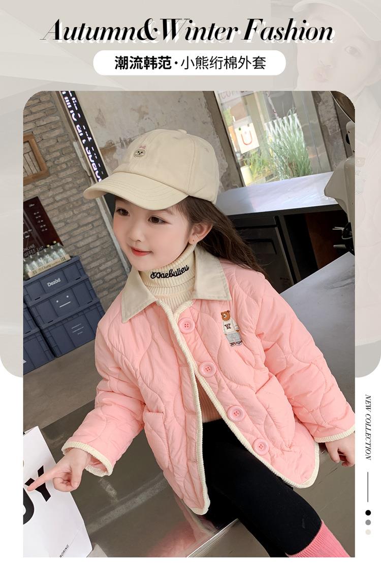 女童小熊绗线棉棉衣冬装洋气外套宝宝大衣儿童保暖棉袄童装潮