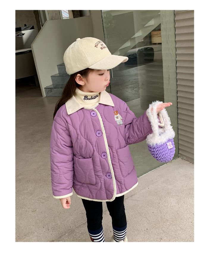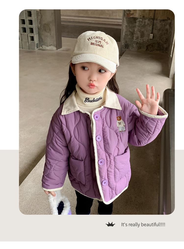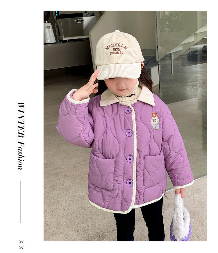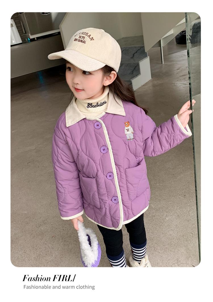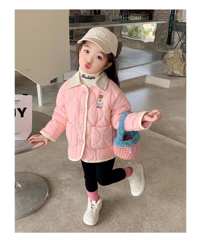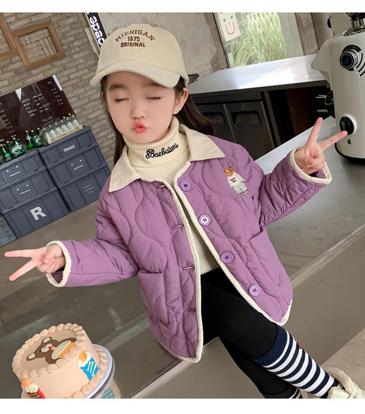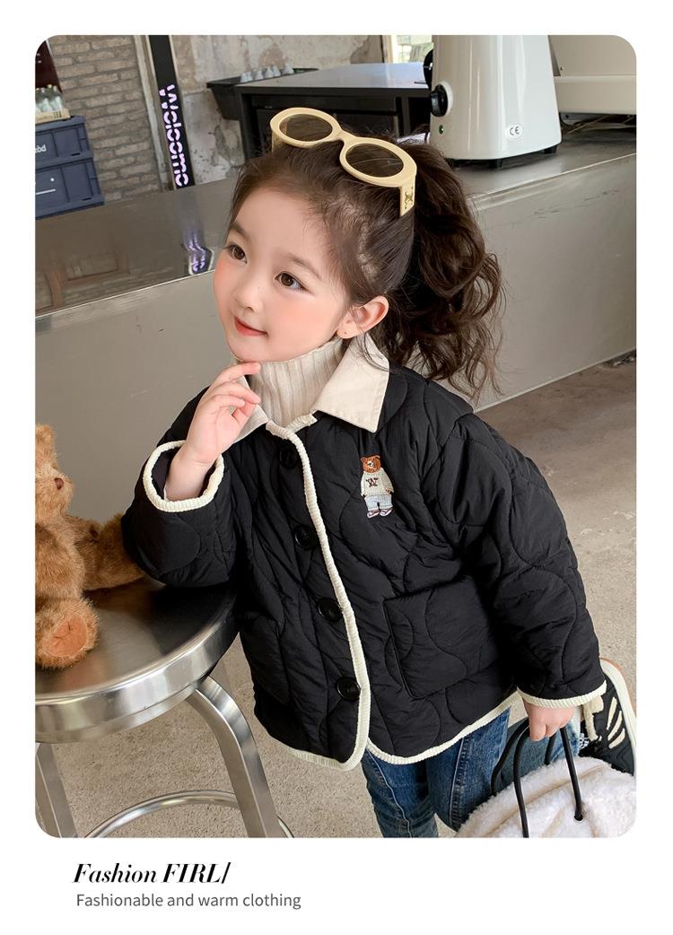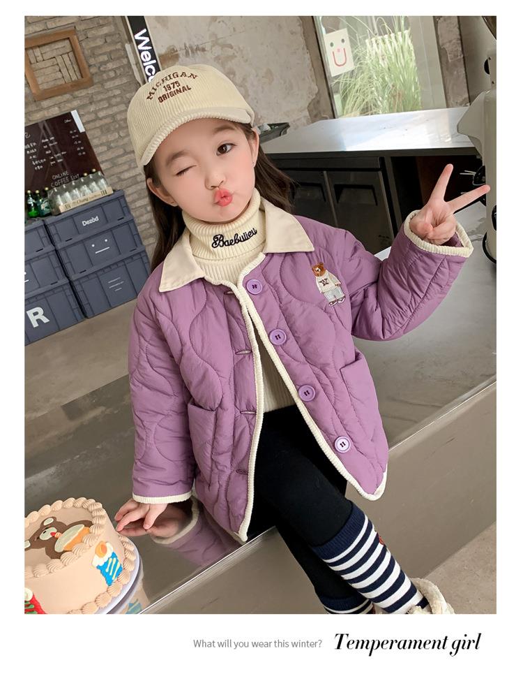 女童小熊绗线棉棉衣冬装洋气外套宝宝大衣儿童保暖棉袄童装潮