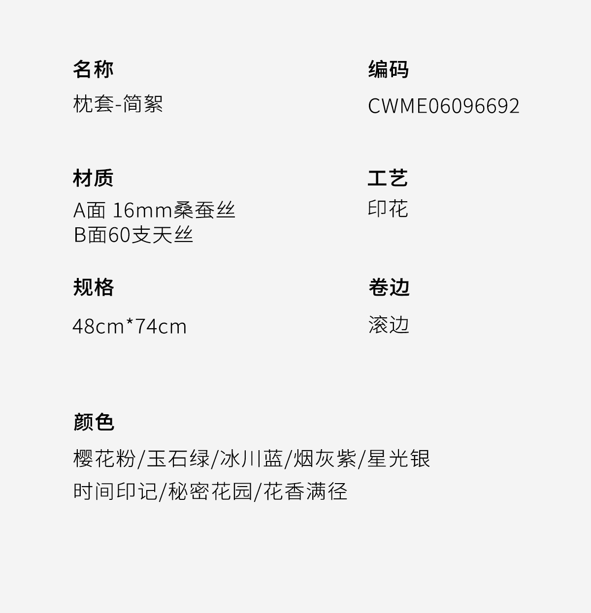 万事利真丝AB面枕套-简絮