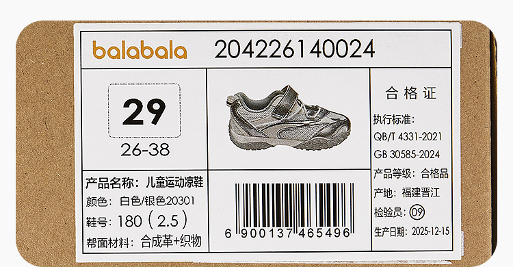【商场同款】巴拉巴拉童鞋儿童运动鞋女童2026夏新款轻盈舒适凉鞋
