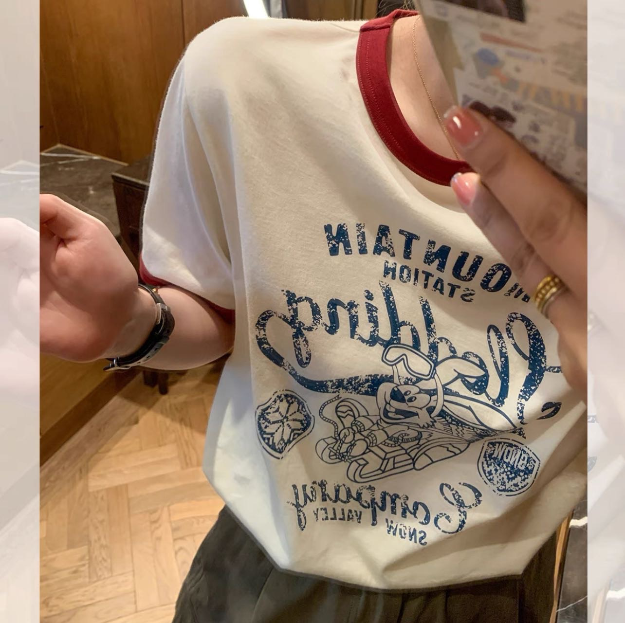 第4️⃣款:复古卡通。 这件是第一眼就喜欢的款 好耐看 我摊牌了,其实每一件我都自留了🥰 夏天一到 每天换一件 想想都美😀