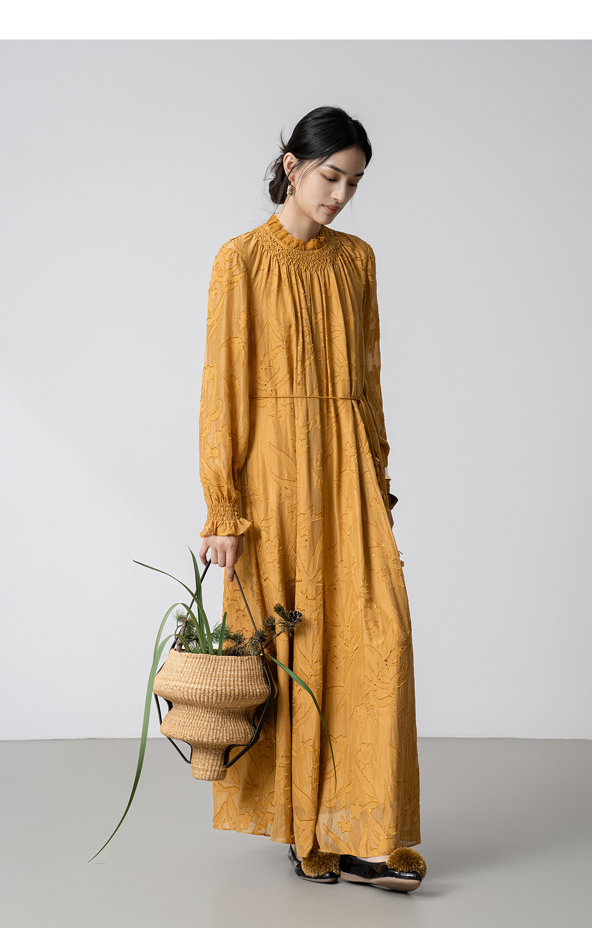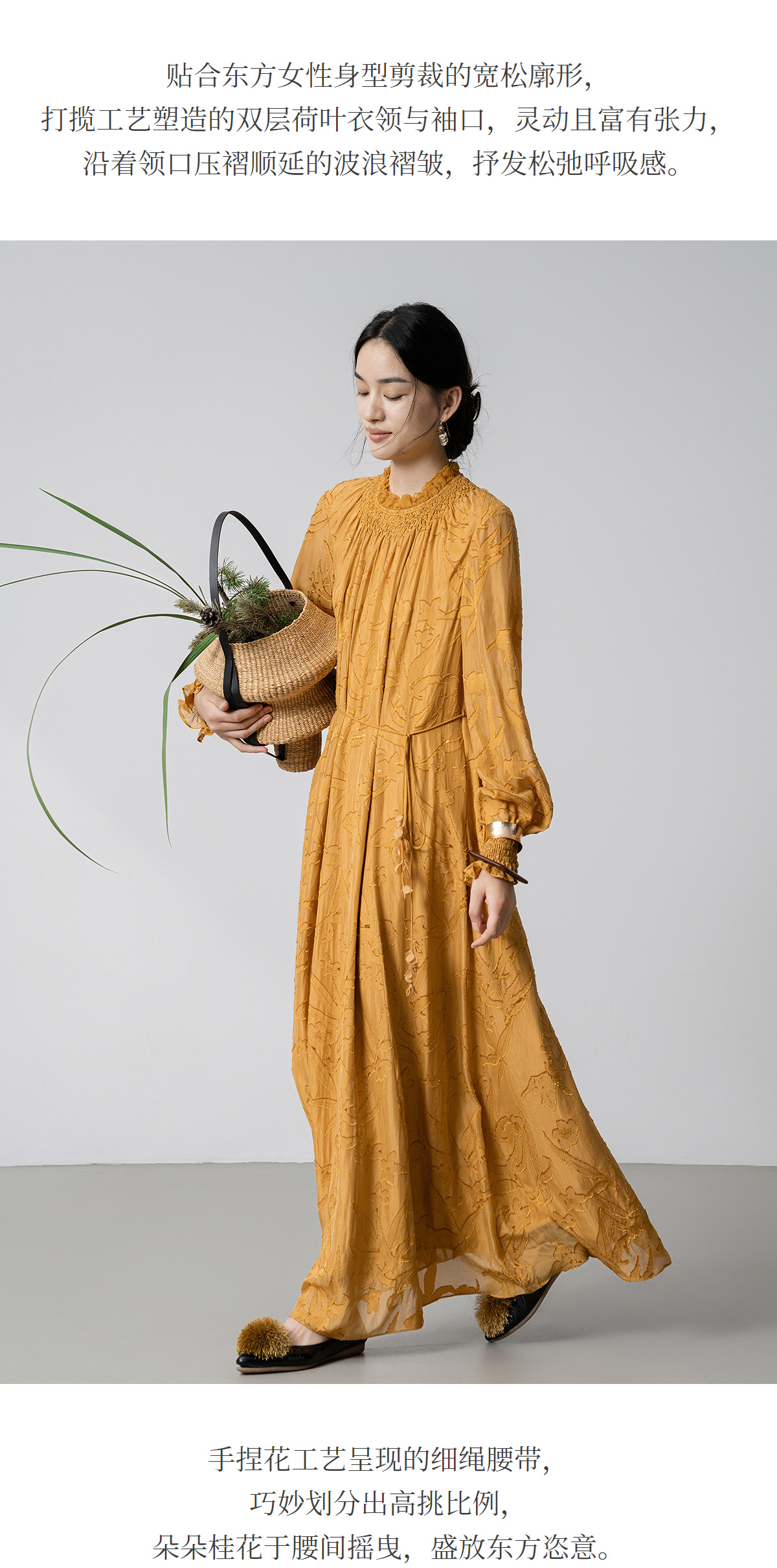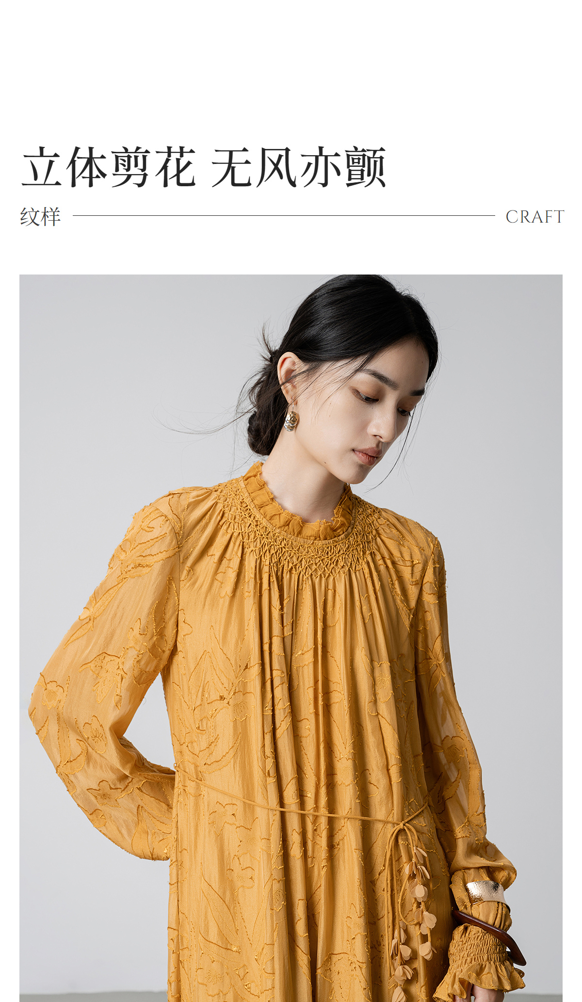 【林栖设计小店】【现货】立体剪花真丝连衣裙宽松打揽气质2025秋季新品花仙子女裙1953068