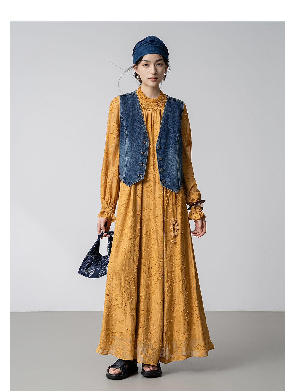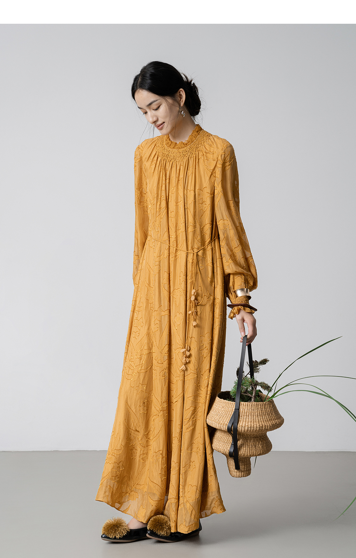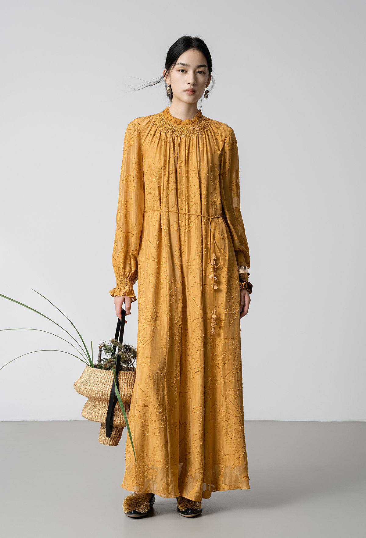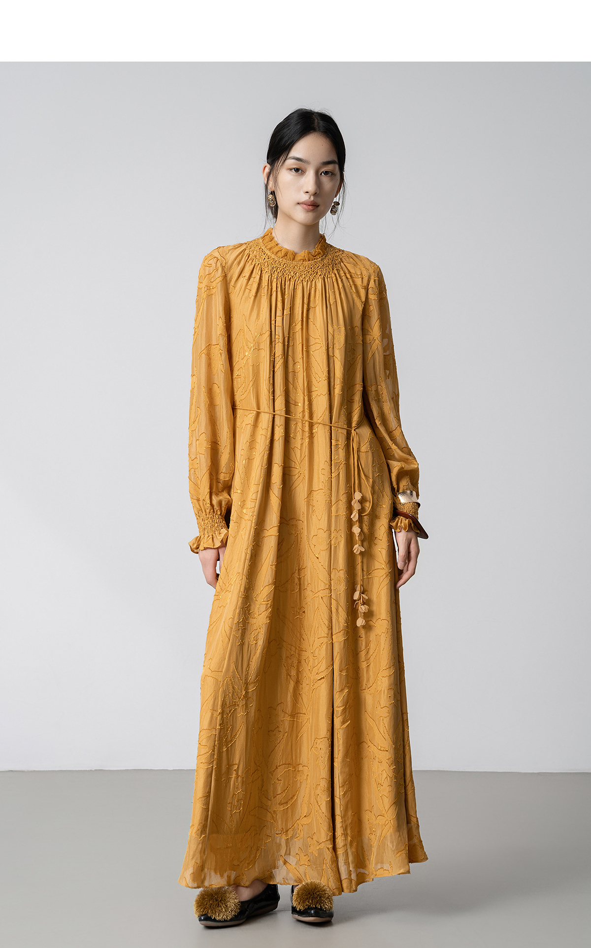 【林栖设计小店】【现货】立体剪花真丝连衣裙宽松打揽气质2025秋季新品花仙子女裙1953068