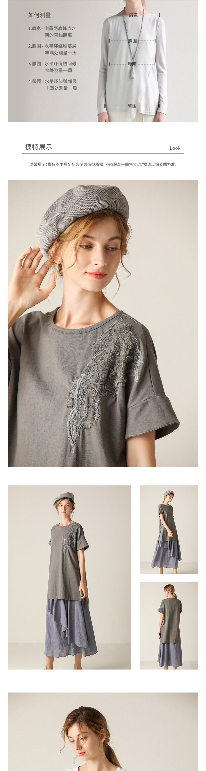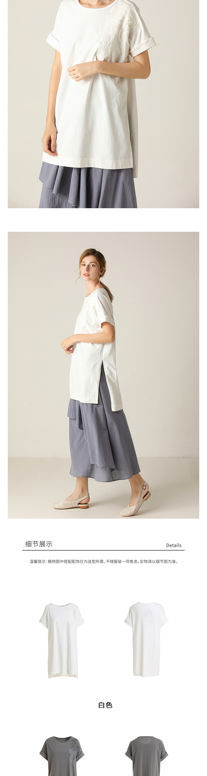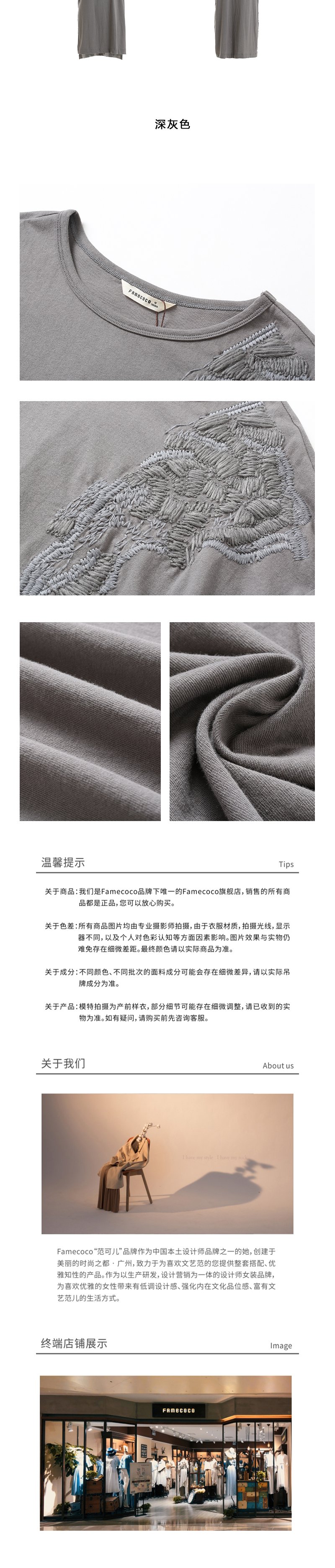 famecoco范可儿T恤短袖宽松绣花休闲中长款上衣F203BB001
